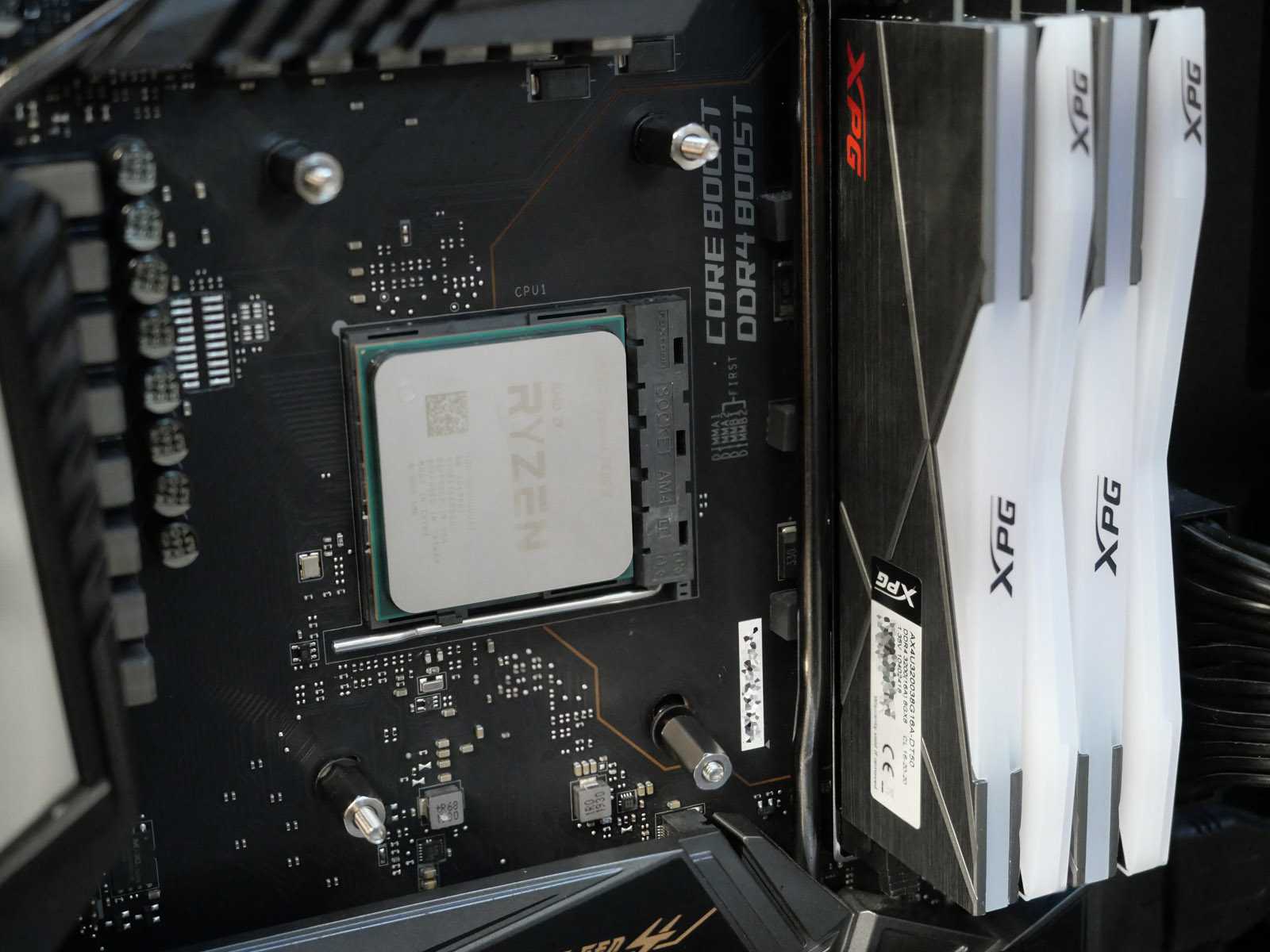 Чтобы установить, понадобится сначала вытащить материнскую плату из корпуса. Планки ОЗУ спокойно вставляются и вынимаются, ничего не мешает.