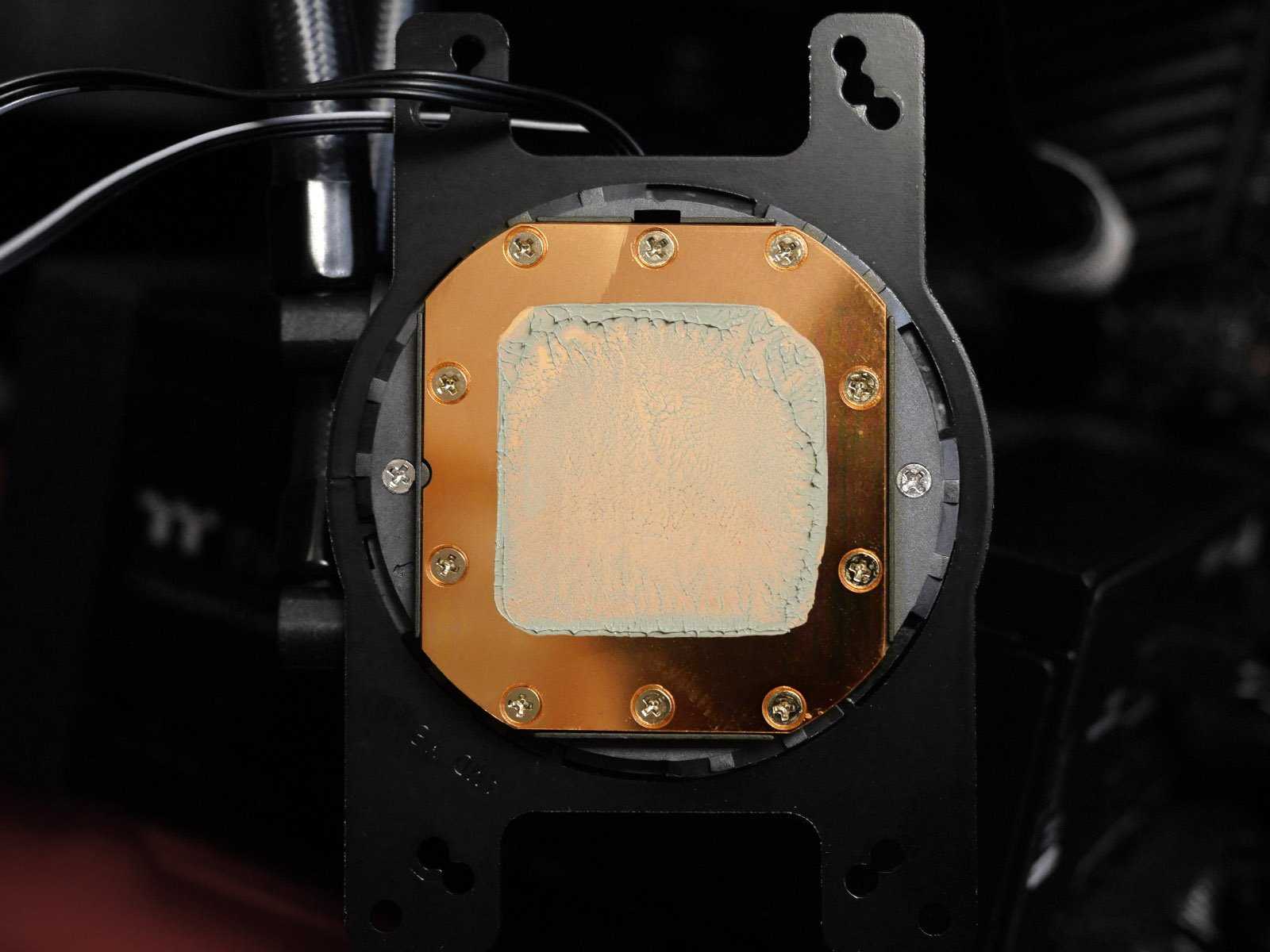 На следующем этапе пластина убирается и с помощью своего рода «шприца» на поверхность кристалла добавляется несколько капель жидкого металла, которые должны будут занять все свободное пространство между кристаллом и радиатором системы охлаждения для эффективного теплообмена. После этого устанавливается система охлаждения. В коротком видео можно посмотреть подробности процесса: