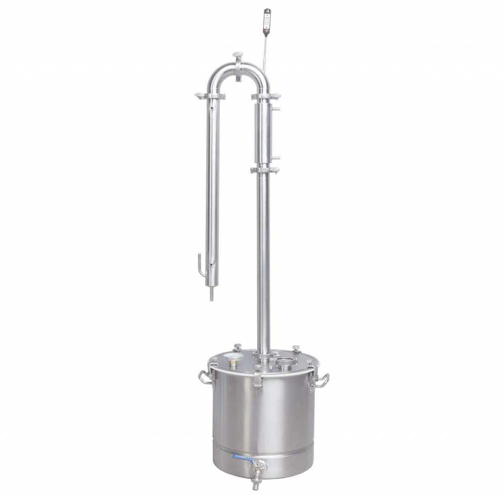 Данный аппарат предназначается для домашнего применения. Объем перегонного куба составляет 20 литров. Проточный охладитель расположен вертикально. В комплекте идет сухопарник, который очистит этиловые пары от сивушных примесей и биметаллический термометр, позволяющий контролировать температурный режим. Особенностью дистилляторов этой серии является съемная крышка, позволяющая легко мыть перегонный куб изнутри.