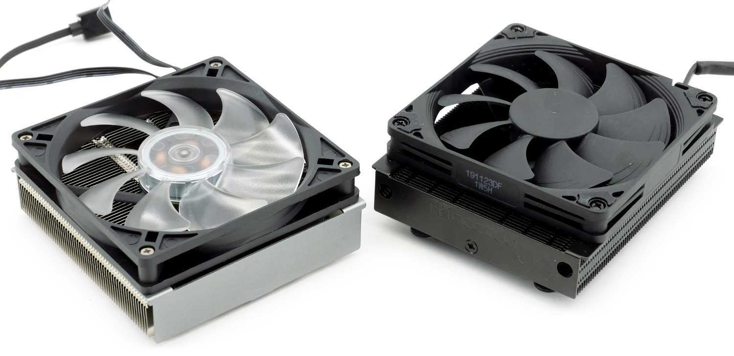 По уровню шума кулера практически равны. Cooler Master MasterAir G200P использует вентилятор DF0921512RFLN на нарезной втулке скольжения. Его можно назвать условно бесшумным до 1500 об/мин, тихим — до 1900 об/мин и комфортным — до 2200 об/мн.