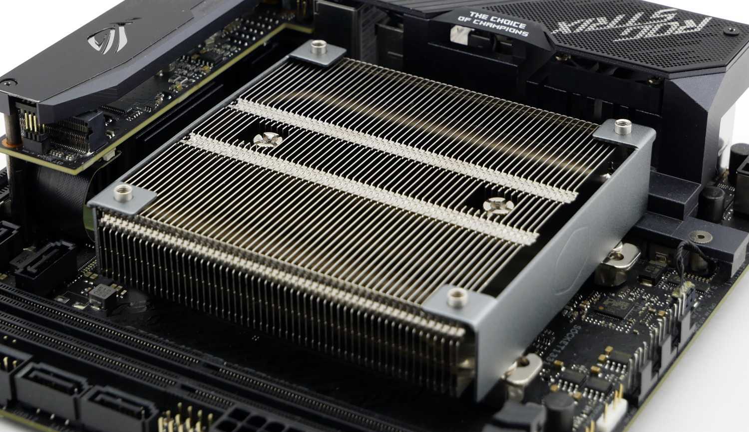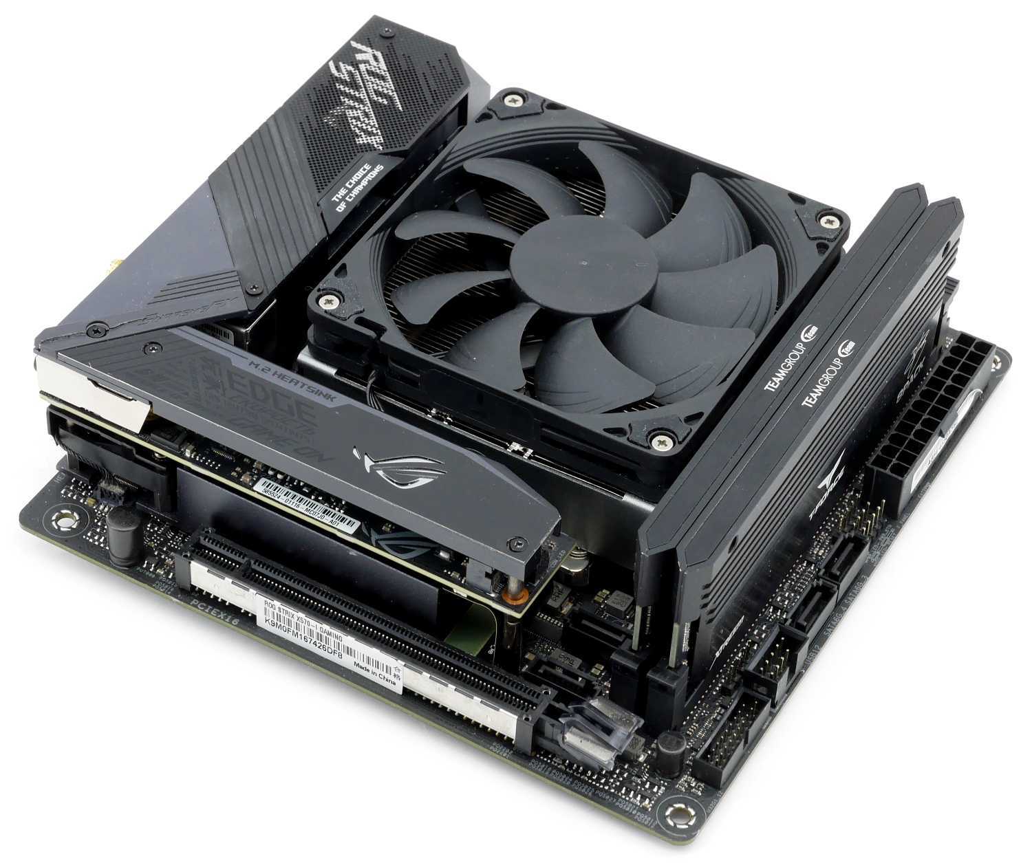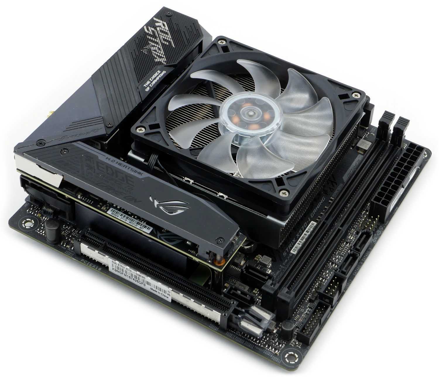 Также подчеркнем, что оригинальная пластина оказалась плохо совместима с материнской платой ASUS ROG Strix X570-I Gaming из-за родной пластины охлаждения зоны VRM.
