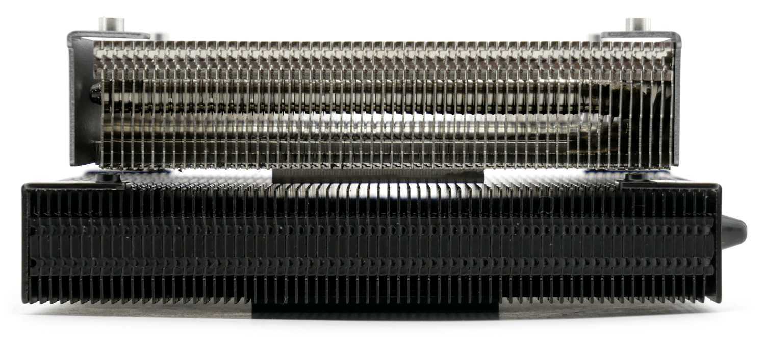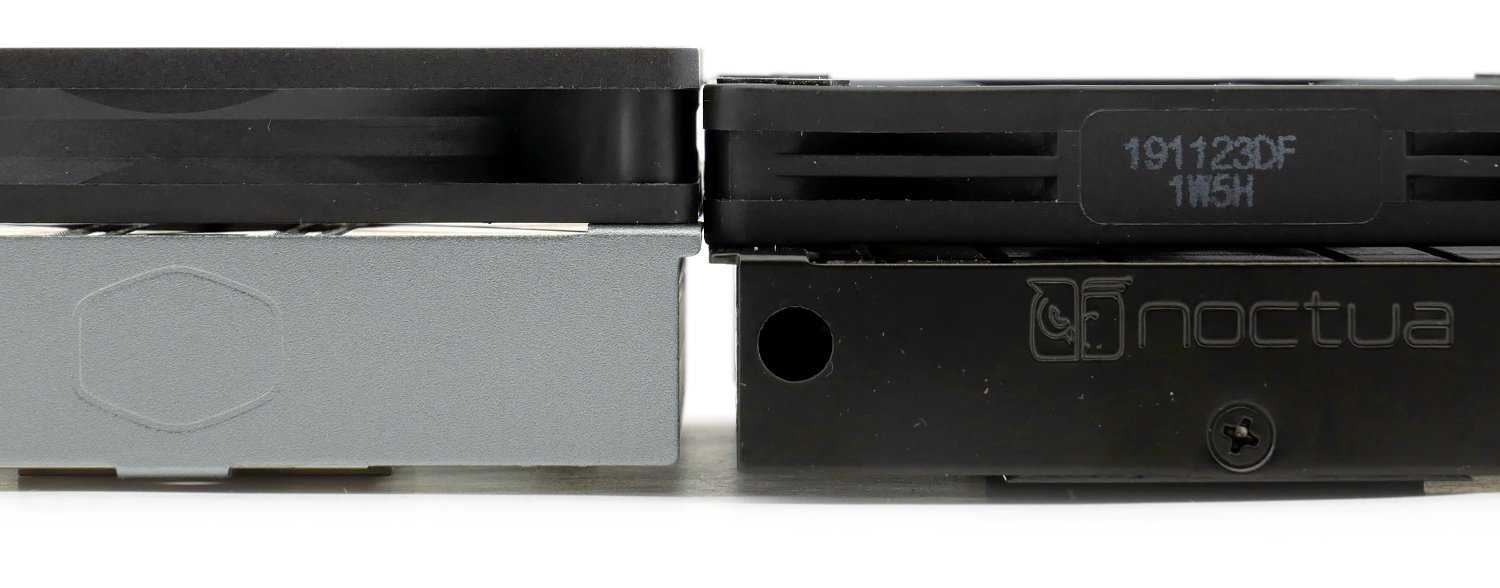 Noctua NH L9a-AM4 chromax.black с установленными скобами на основании на 2 мм выше решения Cooler Master, но в «чистом поединке» он ниже на 3 мм.