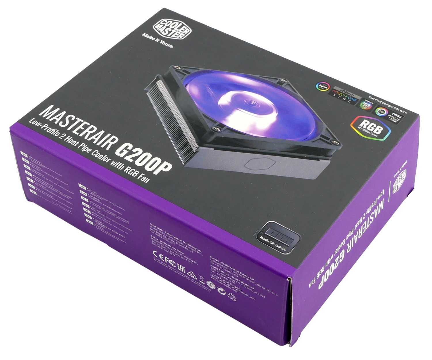 | Описание | Охлаждение для процессора с испарительной камерой MasterAir G100M и контроллером RGB подсветки для ручного управления |