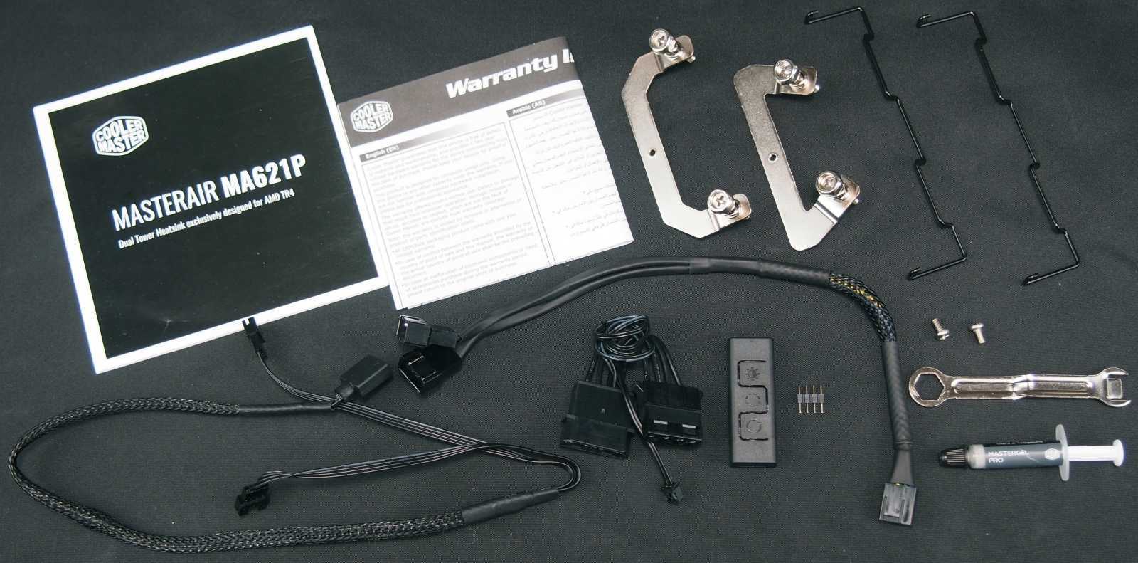 Для полной совместимости в комплекте поставки находятся различные монтажные брекеты, тюбик фирменной термопасты MasterGel Pro, необходимые винты и болтики.