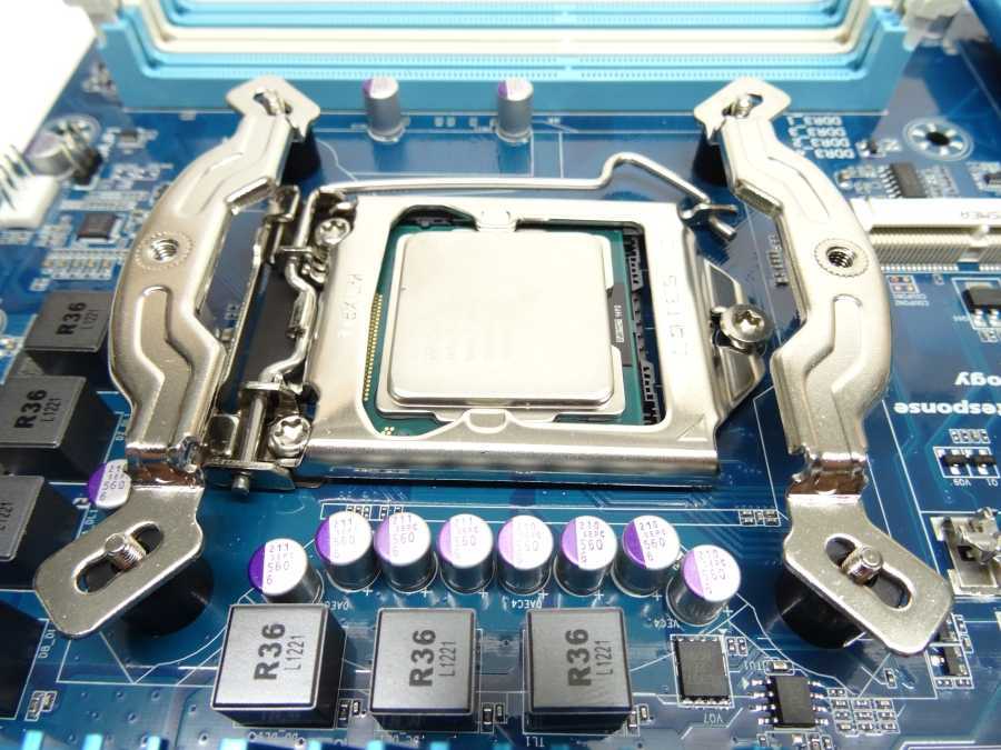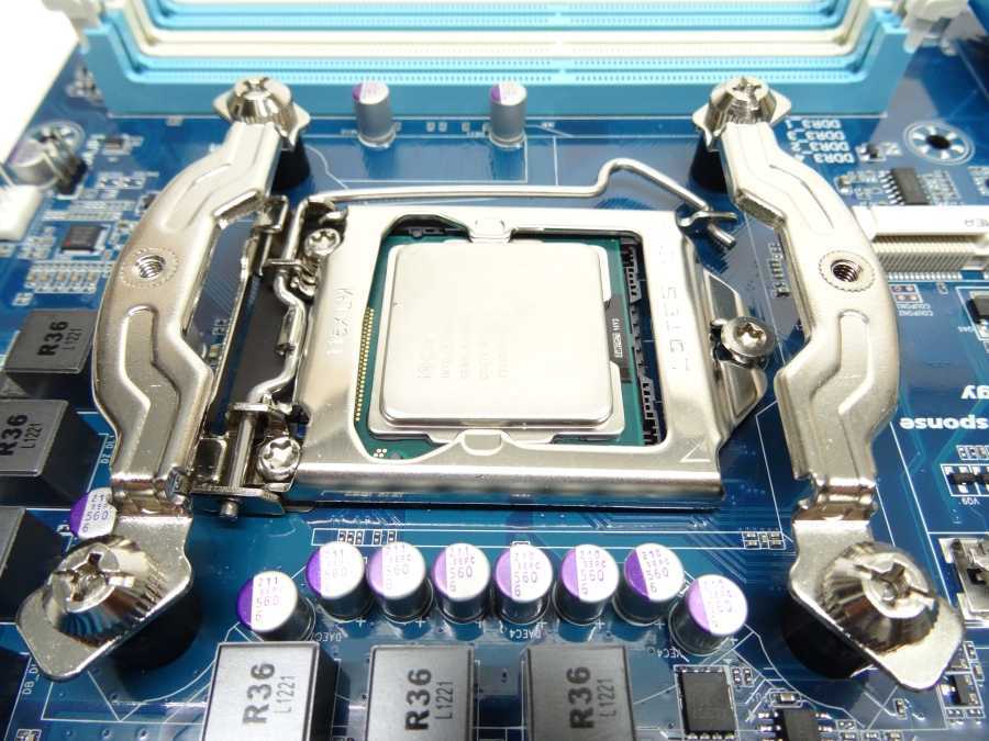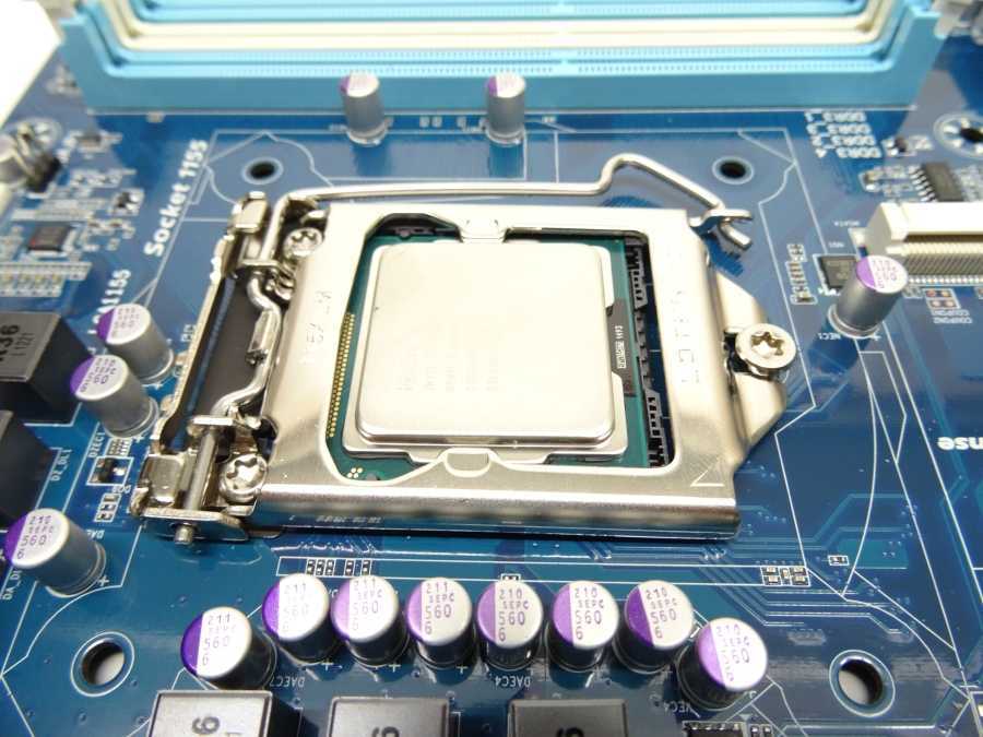 Затем устанавливаем в разъем процессор, в нашем случае это i7-3770k, который является вот уже на протяжении долгого времени бессменным компонентом нашей тестовой системы. Также необходимо нанести на процессор термопасту. В своих тестах наша редакция i2Hard использует термоинтерфейс GC-Extreme от компании Gelid.