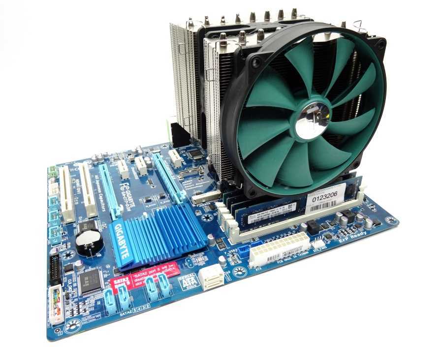 Наглядно это видно на фото ниже. При максимальном подъеме вентилятора, установленного с внешней стороны, модули памяти чувствуют себя достаточно вольготно, и над ними даже остается некоторый запас свободного пространства. Поэтому при покупке Deepcool Assassin можно не бояться несовместимости с модулями оперативной памяти. Исключением следует считать лишь модули памяти с высокими радиаторами.