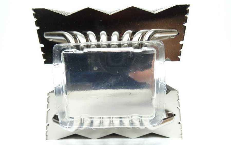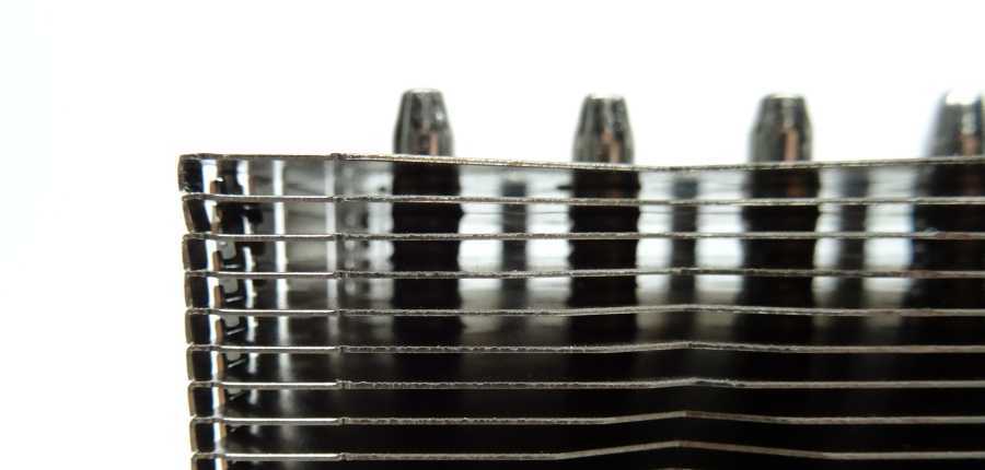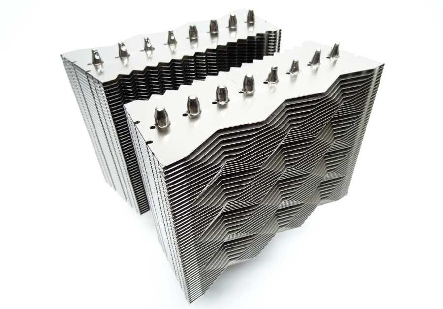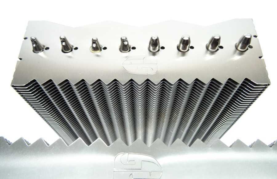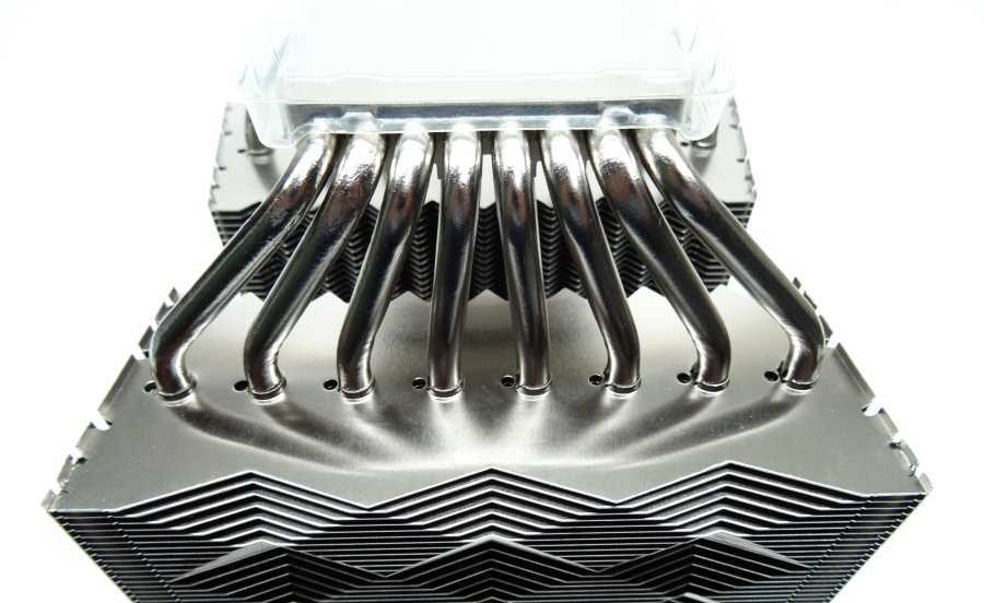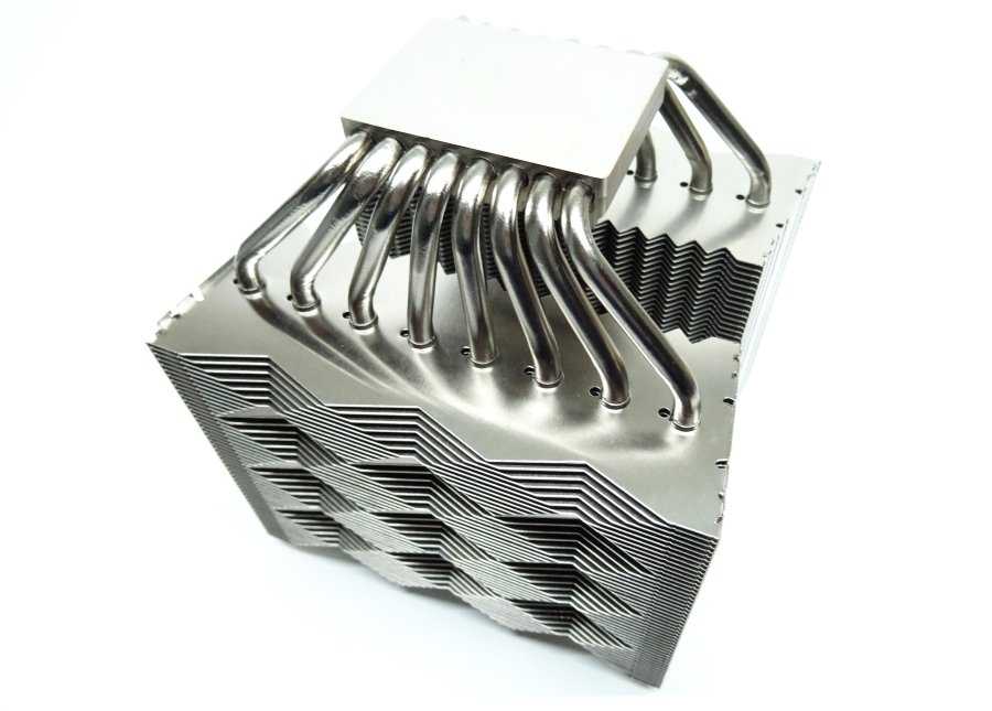 Всего в конструкции используется 8 тепловых трубок и 96 никелированных алюминиевых пластин (по 48 пластин на каждой секции).