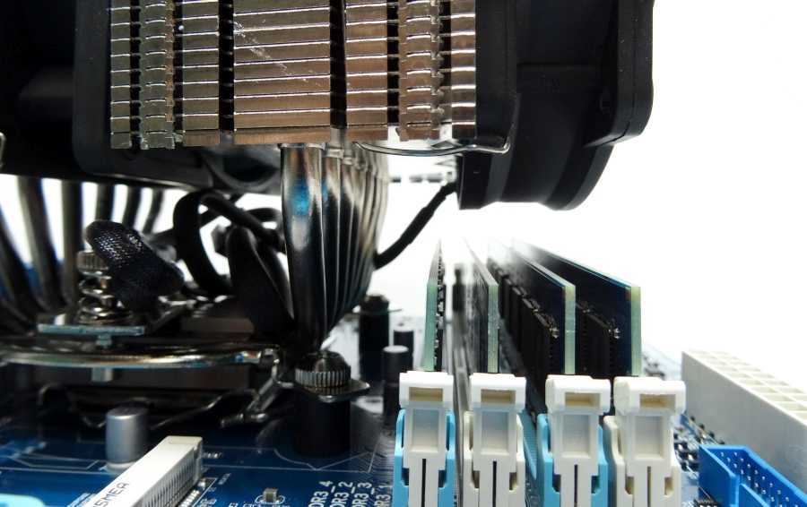 Как я уже и говорил, вам следует забыть о модулях с высокими радиаторами. Из 8 разъемов для оперативной памяти доступными остались только 2 крайних с левой стороны относительно сокета. Правая сторона стала недоступна вовсе. Такой расклад меня не очень обрадовал. Если вы планируете покупать такой кулер, то имейте это в виду