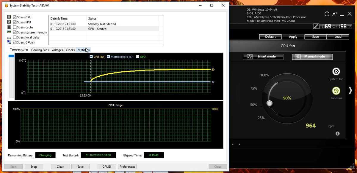 За предоставленные процессор AMD Ryzen 1600X и видеокарту Zotac AMP! GTX 1060 6GB благодарю магазин Kiev-IT. Процессор был разогнан до 3850 МГц. Тестирование проводилось в стресс-тесте AIDA64 в течение 20 минут. Фоновая температура — 23 градуса. Тесты проводились на термопасте be quiet! DC1. Результаты тестирования следующие:
