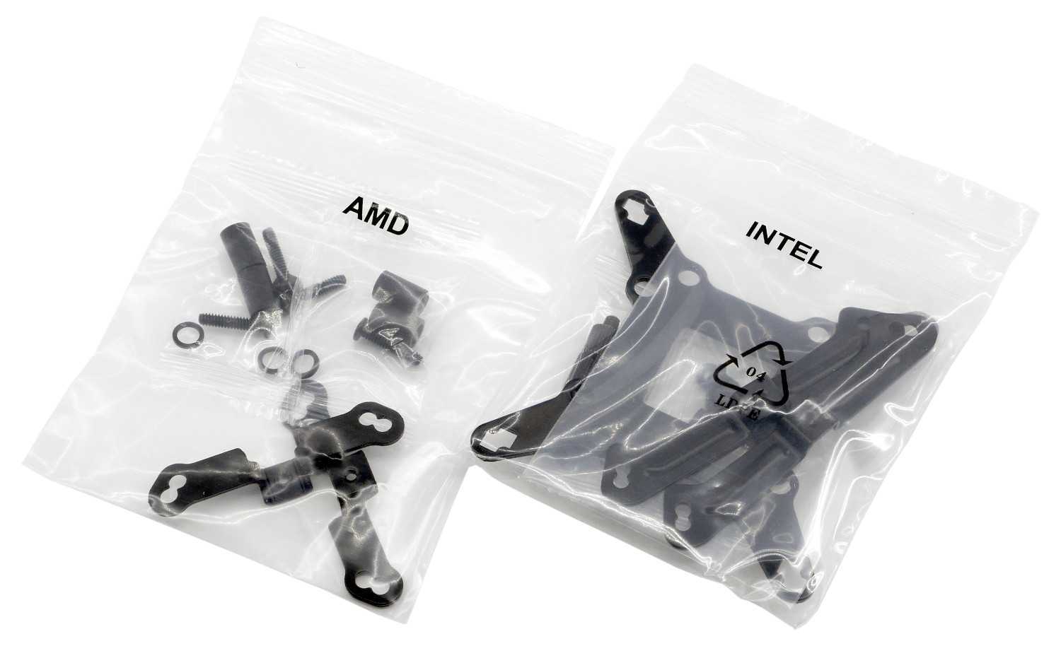 Крепления различных сокетов грамотно расфасованы в подписанные упаковки, что облегчает процесс установки СЖО.