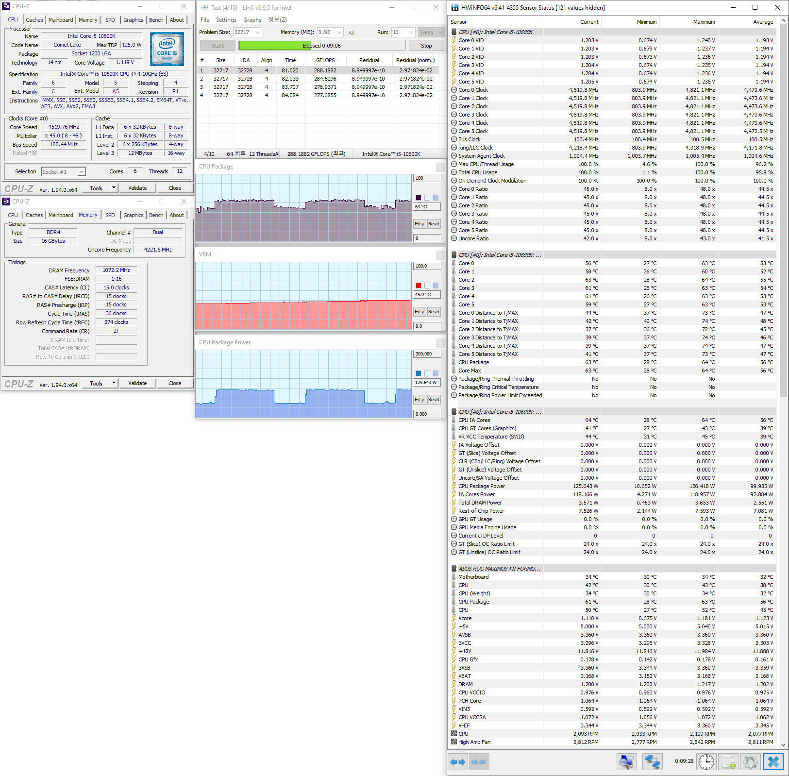 Начнем тестирование на процессоре Intel Core i5-10600K. Вначале результаты снимались с процессора в стоковом состоянии с уровнем потребления ~112 Вт, демонстрирующем стабильную частоту по всем ядрам 4500 МГц при напряжении 1,15 В в стресс-тесте linX версии 0.9.5.
