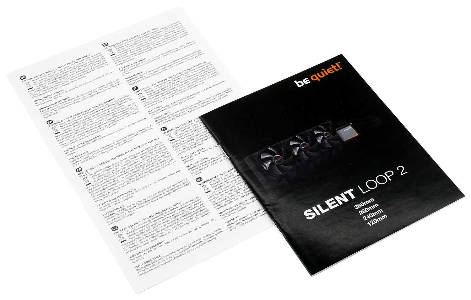 Комплектация be quiet! Silent Loop 2 120mm соответствует идеологии бренда и включает множественные полезные аксессуары. Но начнем, конечно, с руководства пользователя и гарантийного буклета.