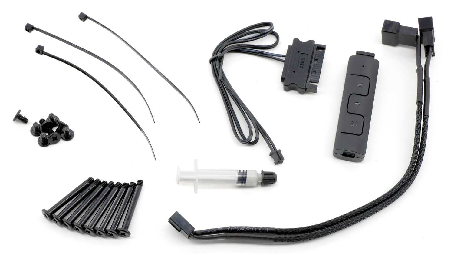 В третьем мешочке находятся винты крепления, несколько стяжек, тюбик термопасты, Y-разветвитель для пары вентиляторов и внешний ARGB-контроллер подсветки.
