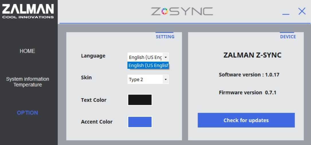 Option – настройки вида утилиты, два скина, возможность смены цвета элементов, выбор языка пока ограничен только английским.