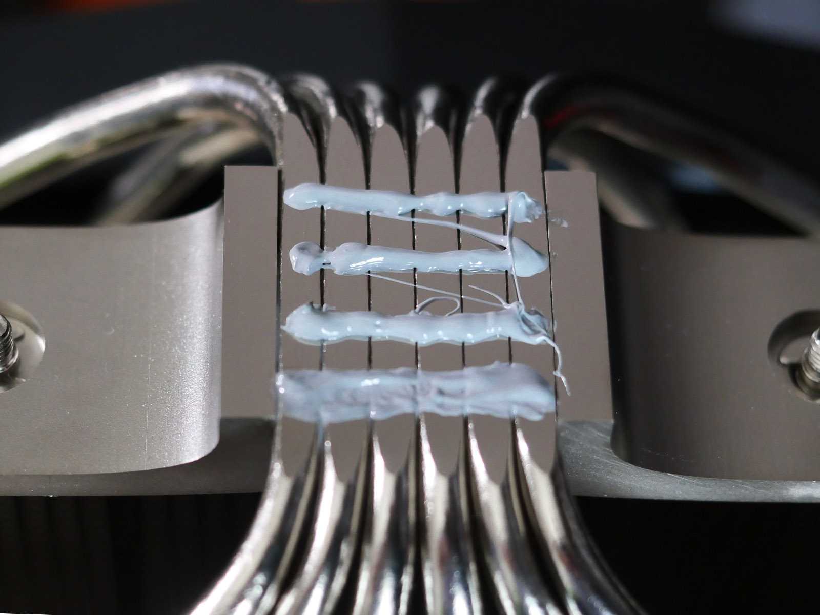 В инструкции к ARCTIC Freezer 50 рекомендуется способ нанесения термопасты четырьмя полосами поперек трубок.