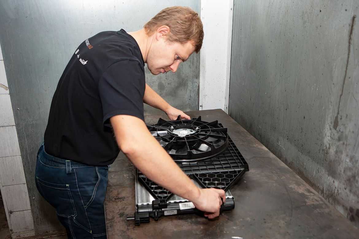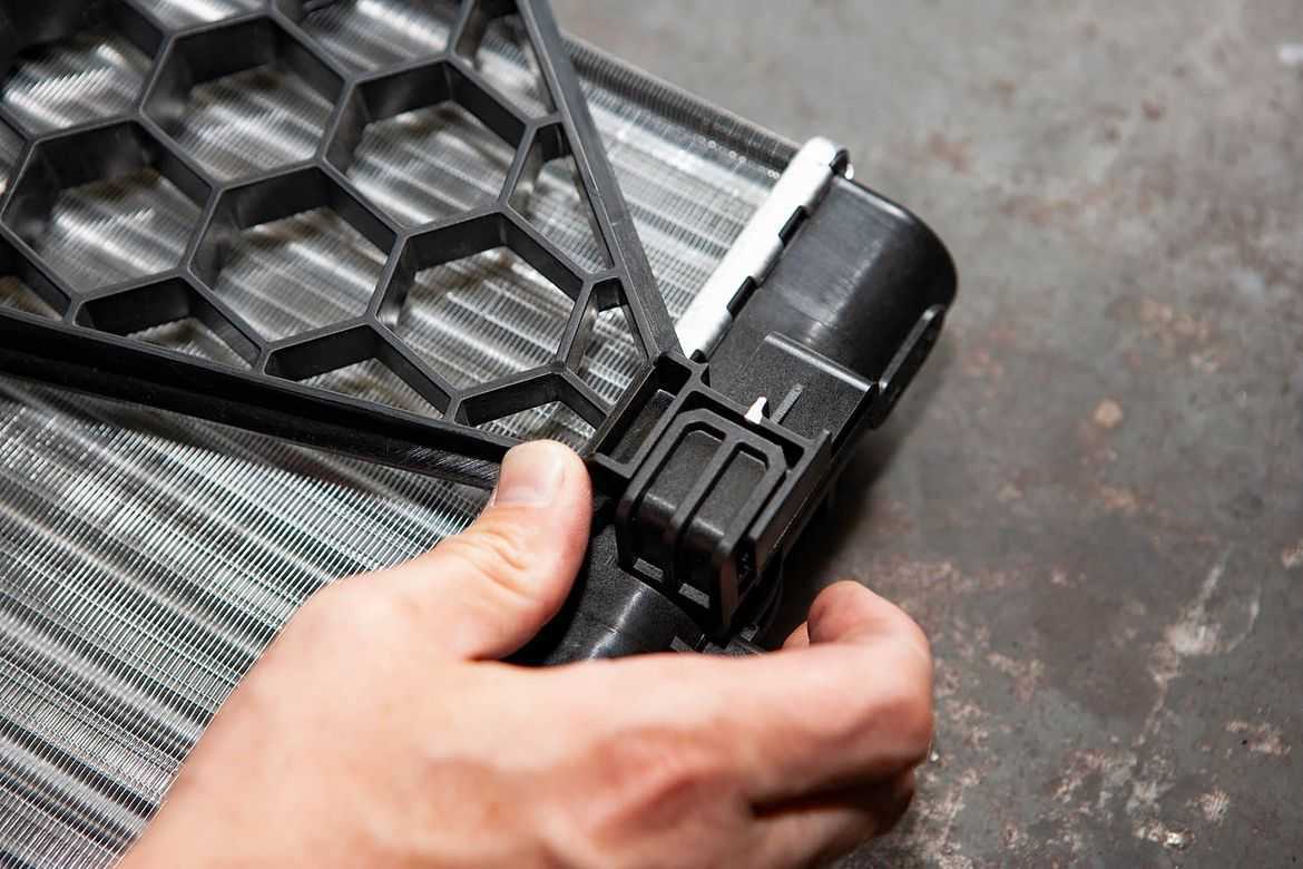 Так как самым первым действием покупателя после покупки будет установка радиатора в автомобиль, мы выполнили проверку на собираемость радиаторов охлаждения с деталями, с которыми он соединяется: радиатором кондиционера, электровентилятором охлаждения и кронштейнами, с помощью которых радиатор закрепляется в рамке.