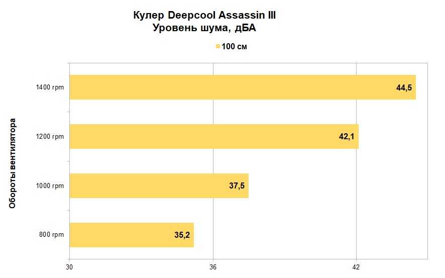 Чем Deepcool Assassin III, к сожалению, не может похвастать, так это тихой работой на максимальных оборотах, хотя в комплекте есть адаптер LSP, ограничивающий максимальные обороты до 1000 rpm. Да и из-за своих габаритов у суперкулера есть проблема совместимости с модулями памяти, имеющими высокие радиаторы (потребуется демонтаж переднего вентилятора), что характерно для кулеров с двухсекционной конструкцией.
