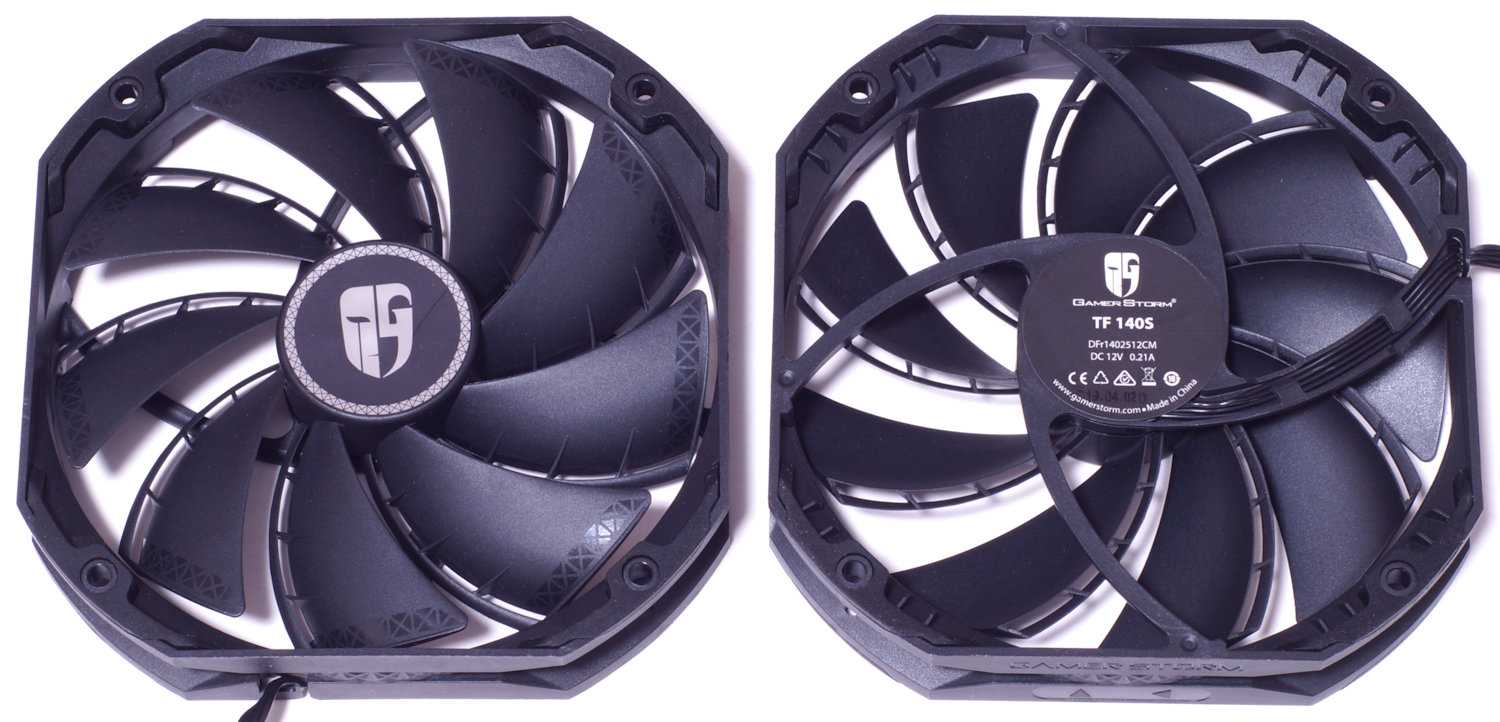 В комплект входят два 140 мм вентилятора Gamer Storm DFr1402512CM.
