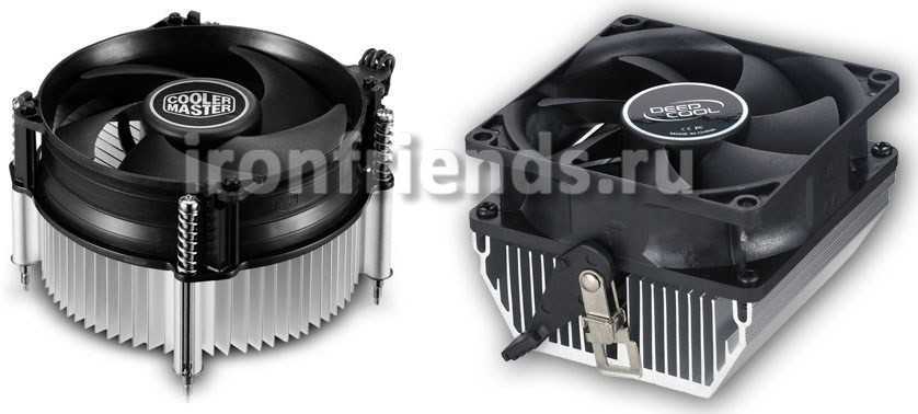 Самыми простыми и дешевыми являются кулеры с алюминиевым радиатором и стандартным вентилятором размером 80 мм. Форма радиатора может быть разной. В основном в кулерах для процессоров Intel радиатор имеет круглую форму, для процессоров AMD – квадратную.