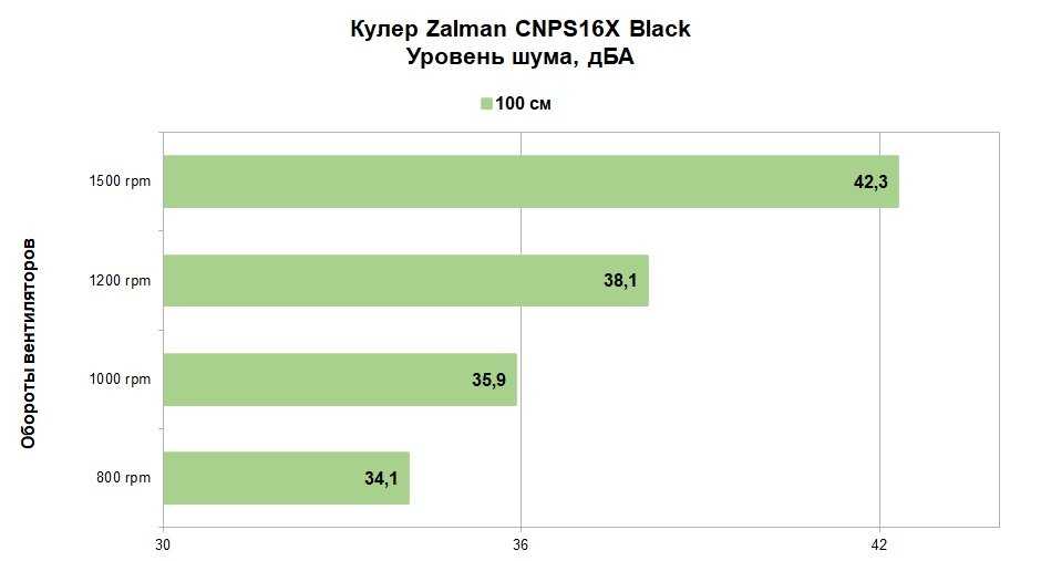 Напомним, что в кулере Zalman CNPS17X используется один 140 мм вентилятор, а в Zalman CNPS16X Black два 120 мм, однако оба кулера оказались примерно сопоставимы по уровню шума. Для обоих кулеров можно сказать, что комфортный уровень шума они обеспечивают при оборотах вентиляторов 1000 rpm и менее. На максимальных оборотах их работа в системном блоке будет хорошо слышна, поэтому на роль тихих систем они не претендуют.