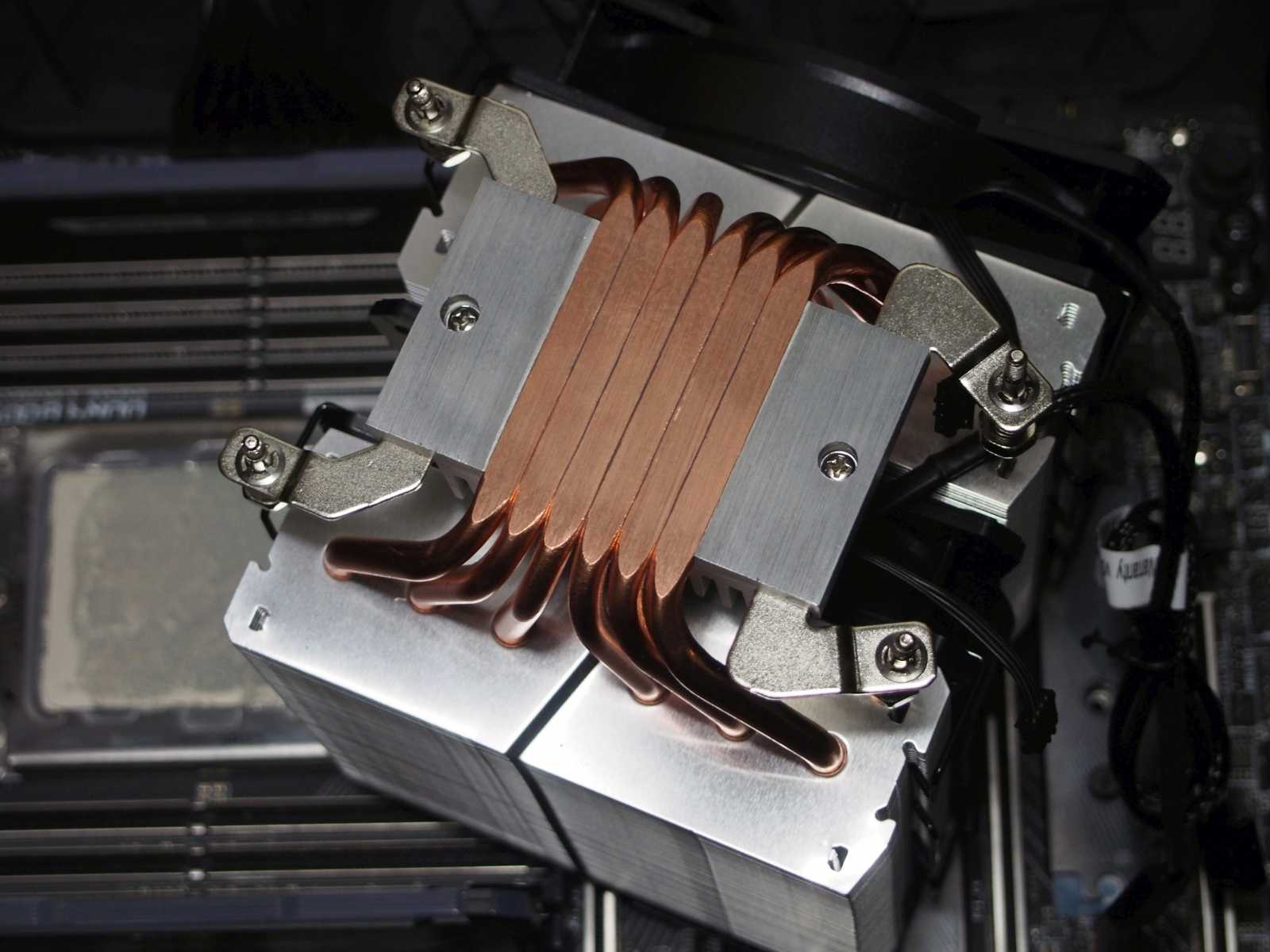 Далее нужно было нанести термопасту на процессор и установить кулер MasterAir MA621P, зафиксировав его винты крепления в соответствующие резьбовые отверстия сокета.