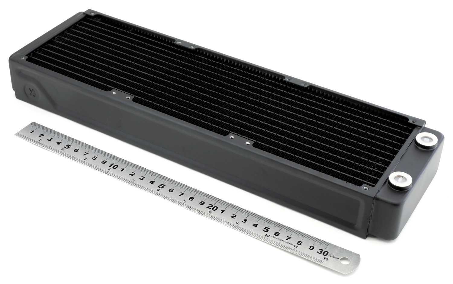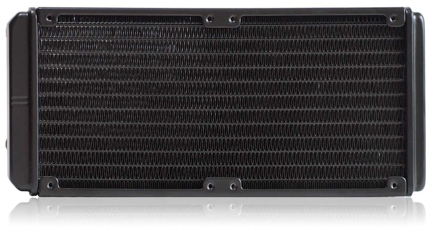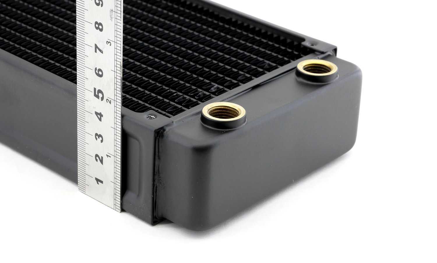 Плотность расположения ребер составляет 12-13FPI, что позволяет легче прокачивать воздух на низких оборотах вентиляторов. Толщина рабочего тела составляет 32 мм.