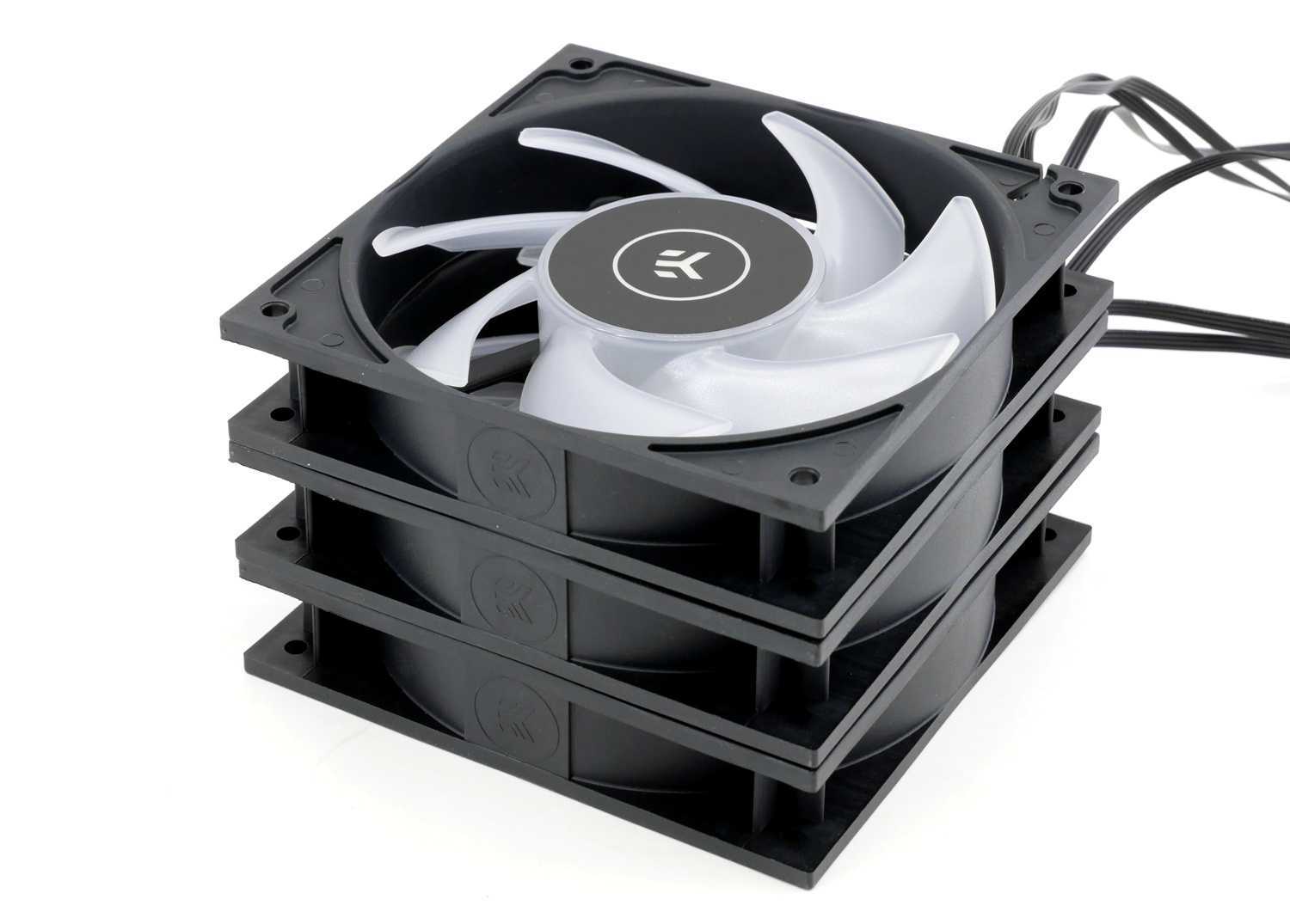 Система жидкостной системы охлаждения EKWB EK-Kit Classic RGB P360 комплектуются тремя вентиляторами EK-Vardar F4-120ER RGB. Как и другие компоненты, они запечатаны в отдельные коробочки.
