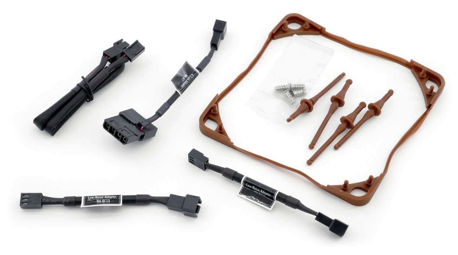 Помимо прочего набора аксессуаров, новинка взамен Y-разветвителя включает переходник с резисторомU.L.N.A. (Ultra-Low-Noise Adapter), понижающим скорость вращения до 1350 об/мин, и кабель питания от блока питания посредством Molex.