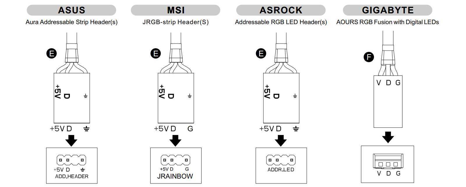 - Gigabyte RGB Fusion c разъемами D_LED;