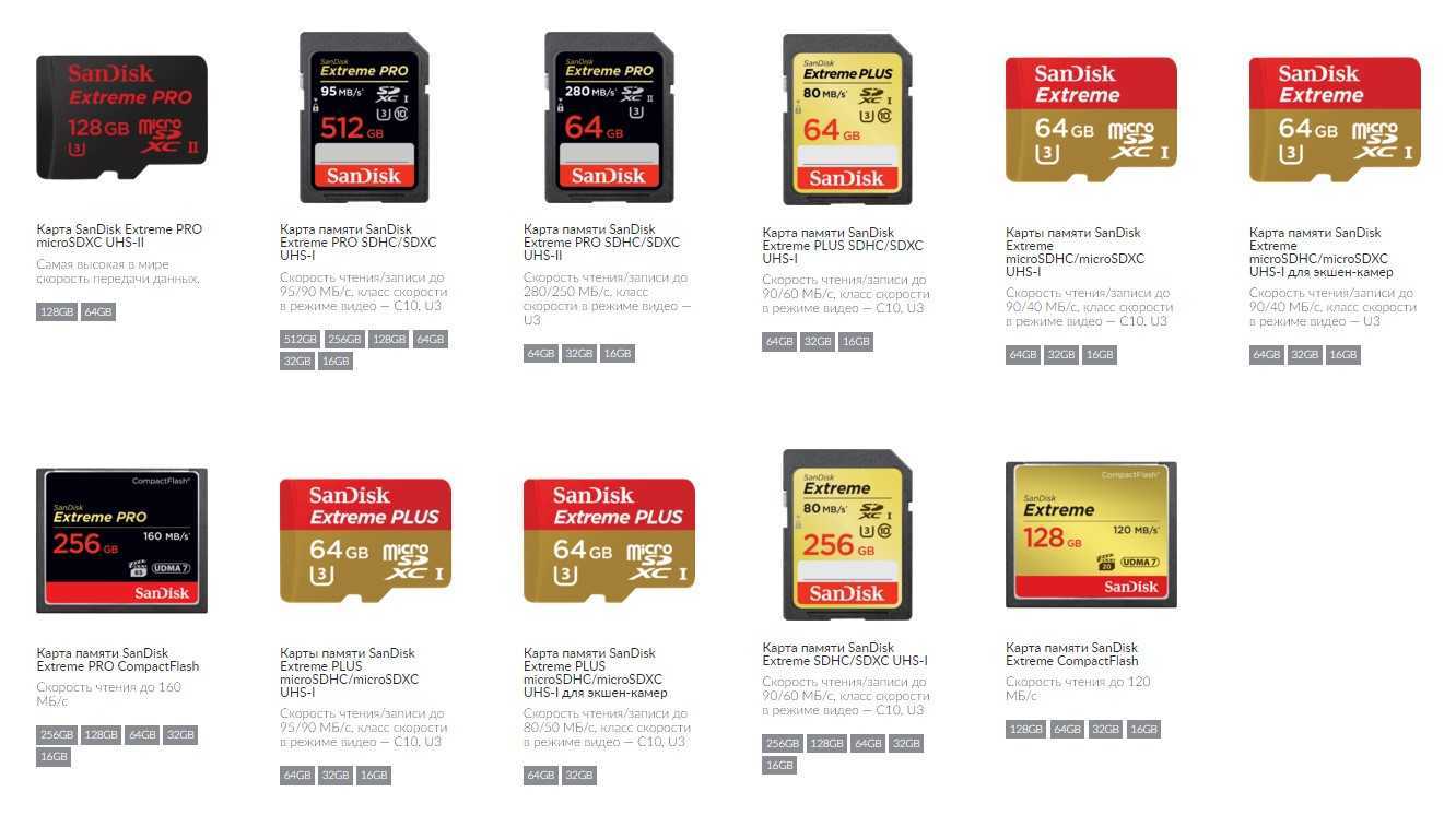 Различия карт в зависимости от объема памяти: