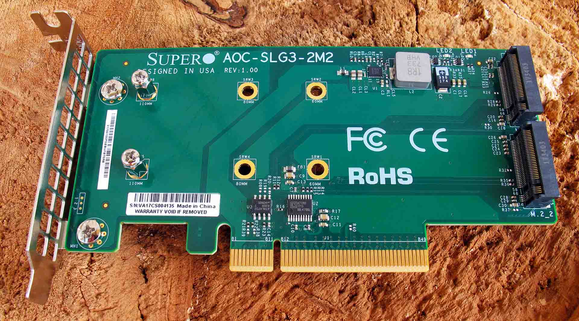 без управляющих контроллеров на борту адаптера Supermicro AOC-SLG3-2M2