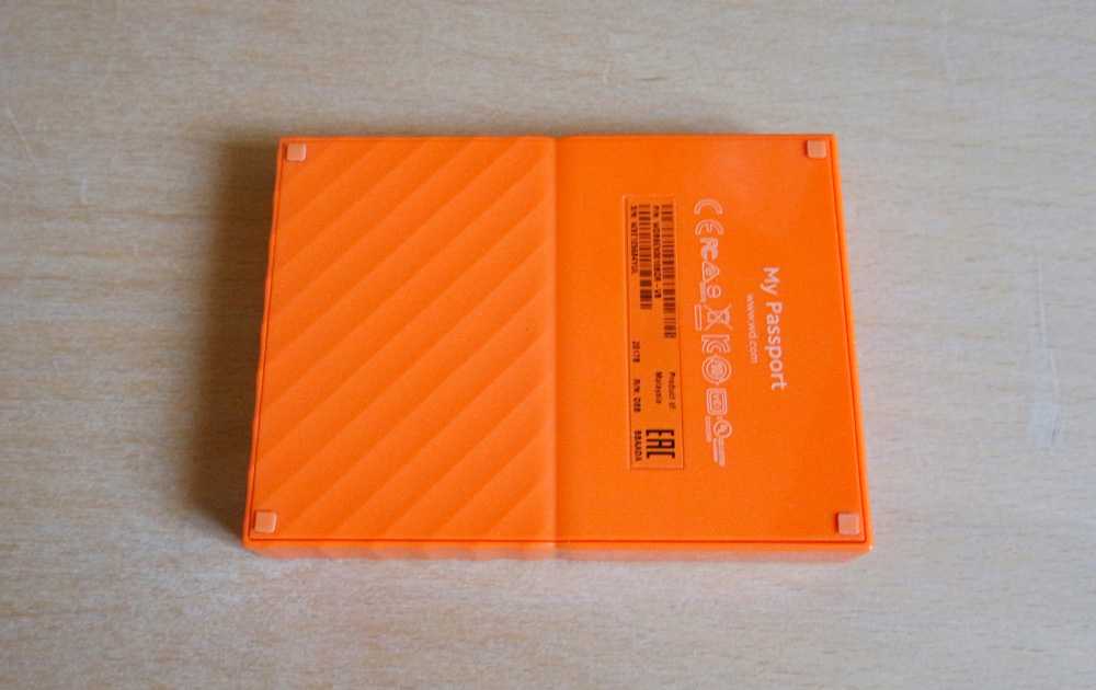 В плане дизайна Western Digital My Passport 1 TB готов удовлетворить вкусы любого пользователя. Производитель предлагает несколько вариантов расцветки устройства: оранжевая, желтая, красная, белая, черная и синяя. Исполнение корпуса тоже интересное: одна его половина ребристая и матовая, а вторая — гладкая и глянцевая. Что касается последнего, глянец склонен к потертостям, поэтому защитный чехол все-таки лучше приобрести, чтобы сохранить накопителю приятный внешний вид.