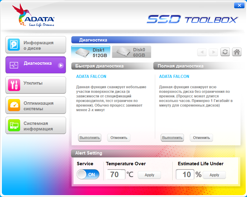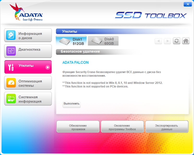 Дополнительные возможности утилиты ADATA SSD ToolBox.