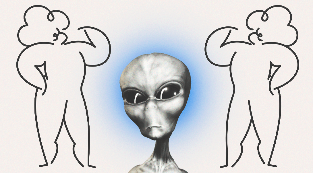 Ещё одно объяснение того, что человечество не может найти инопланетян: не там ищет. Просто представь, что ты пиксельный персонаж из двухмерного мира. У тебя есть только два измерения — длина и ширина. И если на тебя сверху посмотрит трёхмерное существо, ты его просто не увидишь, ведь в твоём мышлении просто отсутствует такое пространство, как высота.