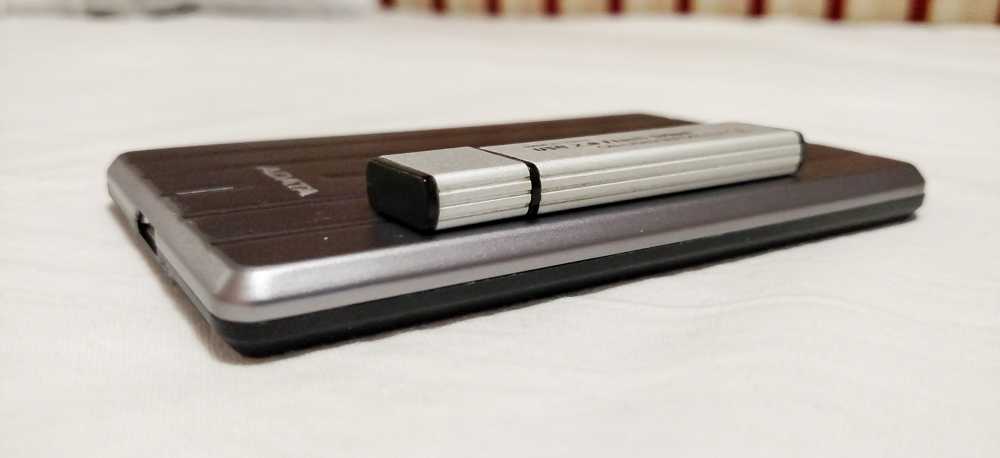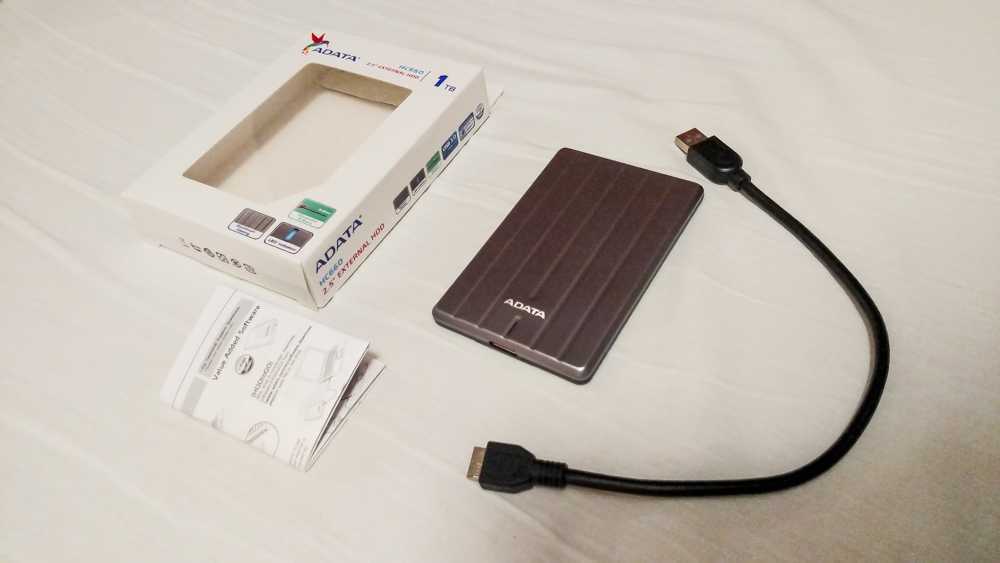 Модель HC660 доступна объемом 1ТБ и 2ТБ. Накопитель весит 124 грамма, а его размеры составляют 120x76x9,6 мм. Накопитель имеет практически такой же размер (или толщину), как и отдельный встроенный диск 2,5” и выглядит довольно впечатляюще. По заявлению производителя, ADATA HC660 является самым легким и самым стильным из всех внешних жестких дисков. Если отойти от громких заявлений, лично мне приглянулась реально малая толщина накопителя, сопоставимая с обычной флешкой.
