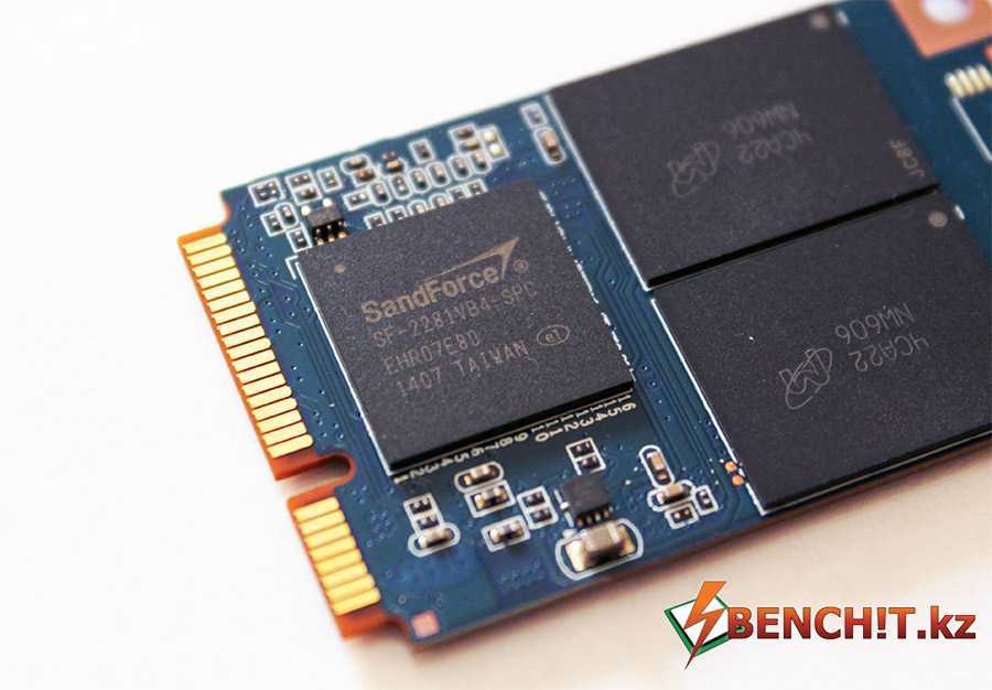 На оборотной стороне присутствуют еще 8 таких же чипов и контроллер SandForce SF-2281VB2-SPC, которой и отвечает за полное функционирование накопителя.