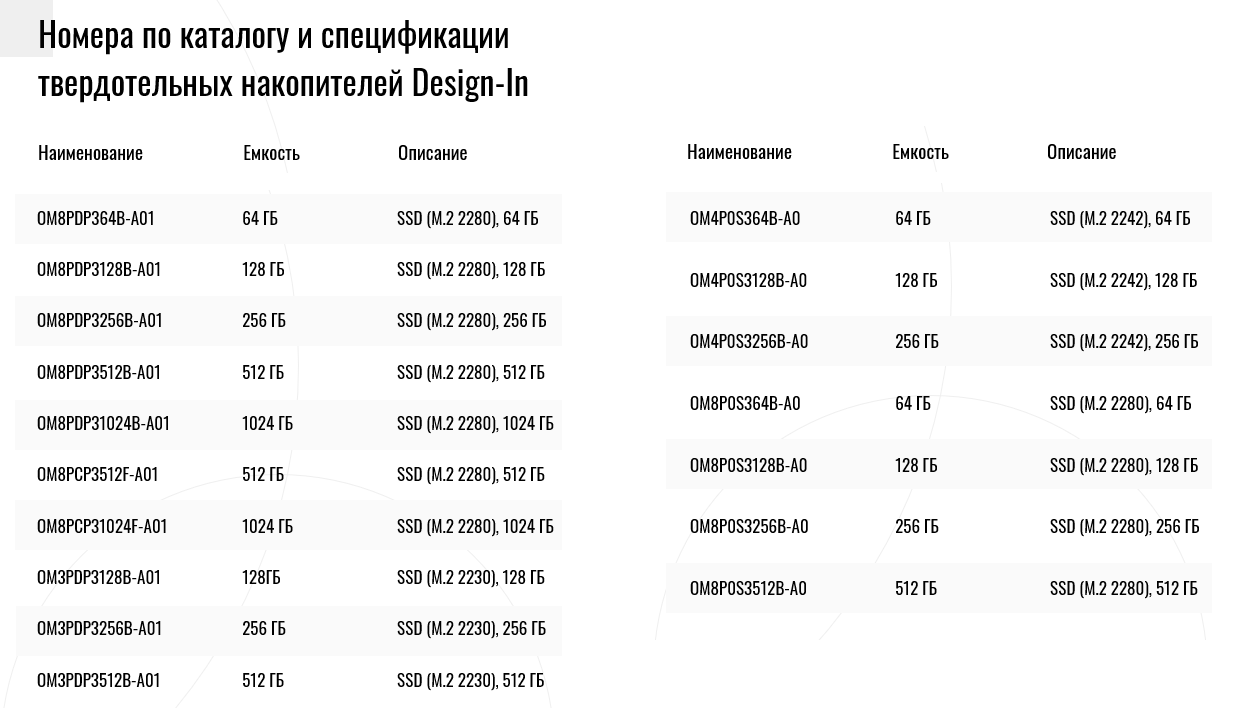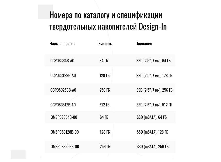 Design-in SSD позволяет клиенту выбрать модель практически с любым интерфейсом и популярными форм-факторами: