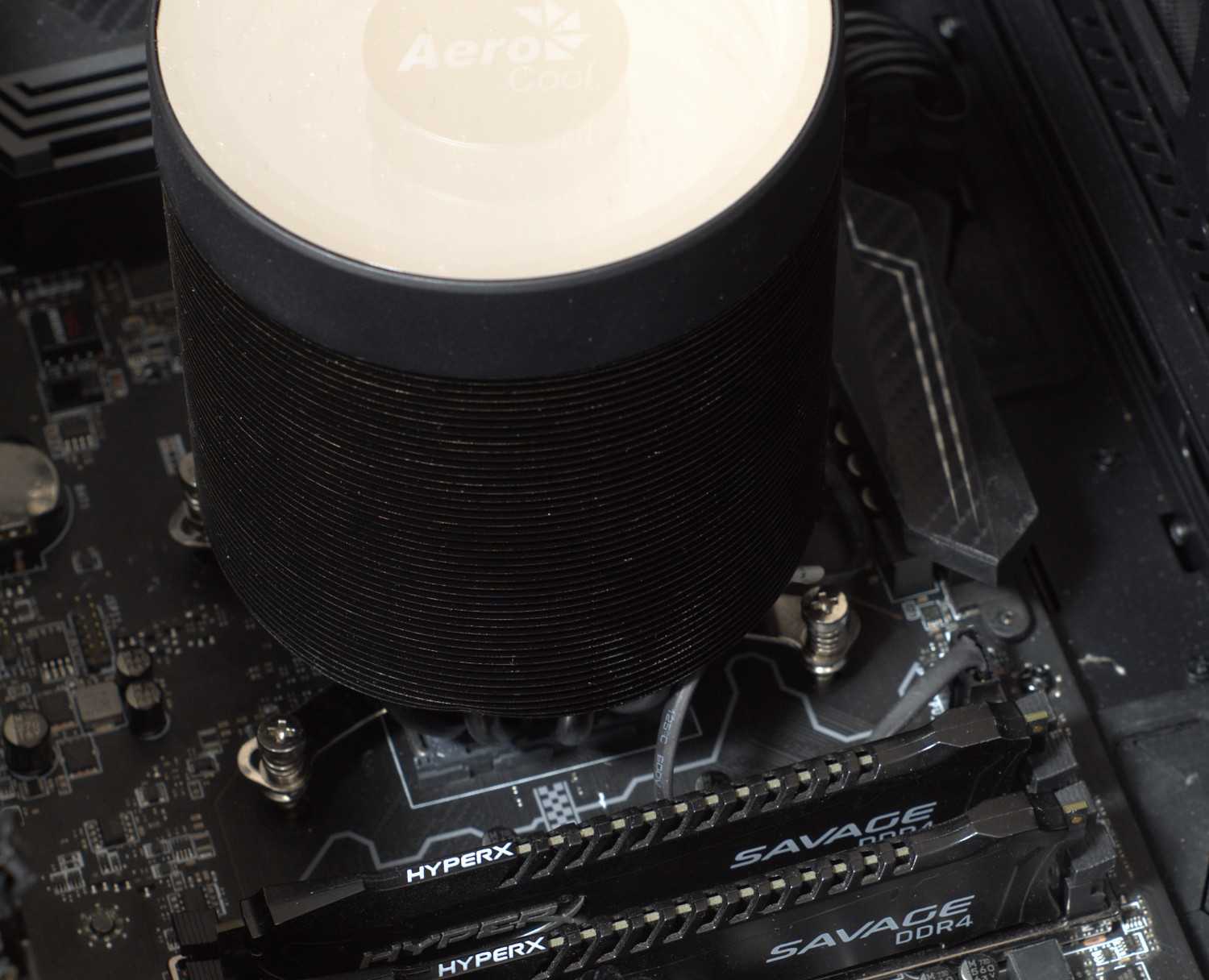 Кулер Aerocool Mirage 5 имеет сравнительно небольшие размеры (диаметр — 100 мм) и находится практически в пределах сокета, поэтому процесс сборки не потребует много усилий, хотя придется потратить чуть больше времени, так как сперва потребуется собрать бекплейт под нужный сокет (мы использовали кулер с платформой AMD AM4). Заметно, что бекплейт подходит для установки на устаревшие платформы Intel LGA775/1366.