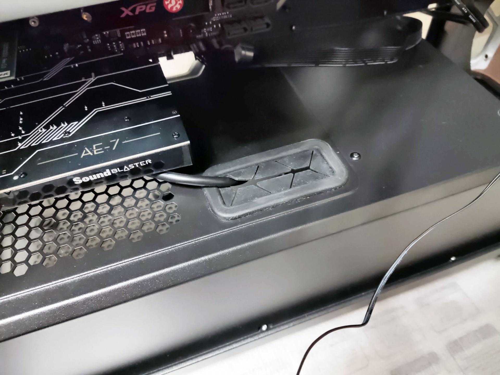 Кабели можно укладывать по шасси со стороны задней стенки, либо пропихнуть их в основное пространство, забрав стяжками, благо отверстий, через которые их можно вывести и за которые завести, в MasterBox MB520 в достаточном количестве.