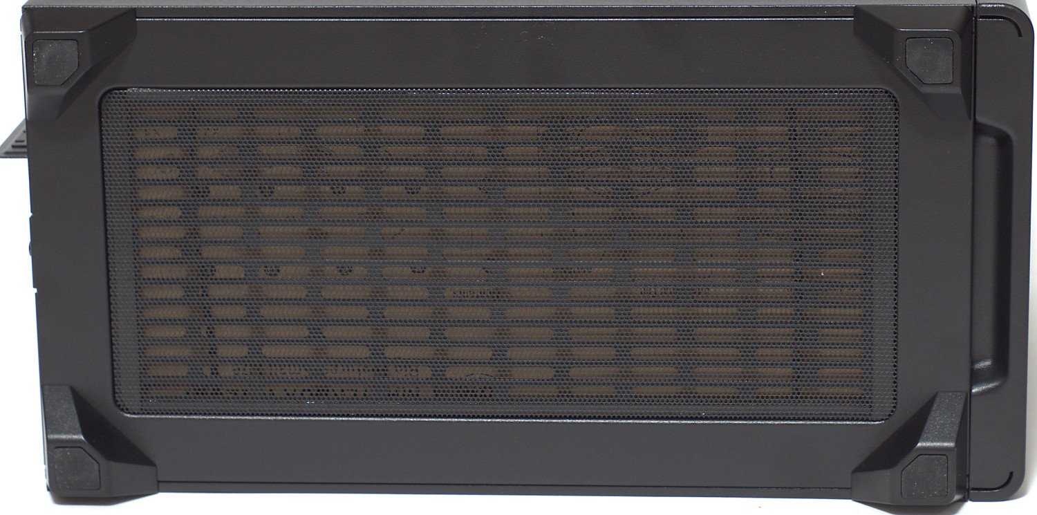 Верх корпуса также получил перфорацию, при этом мелкая сетка сверху обеспечивает не только эффектный вид, но и дополнительно выступает в качестве противопылевого фильтра, правда чистить ее придется регулярно (благо верхняя панель легко снимается).