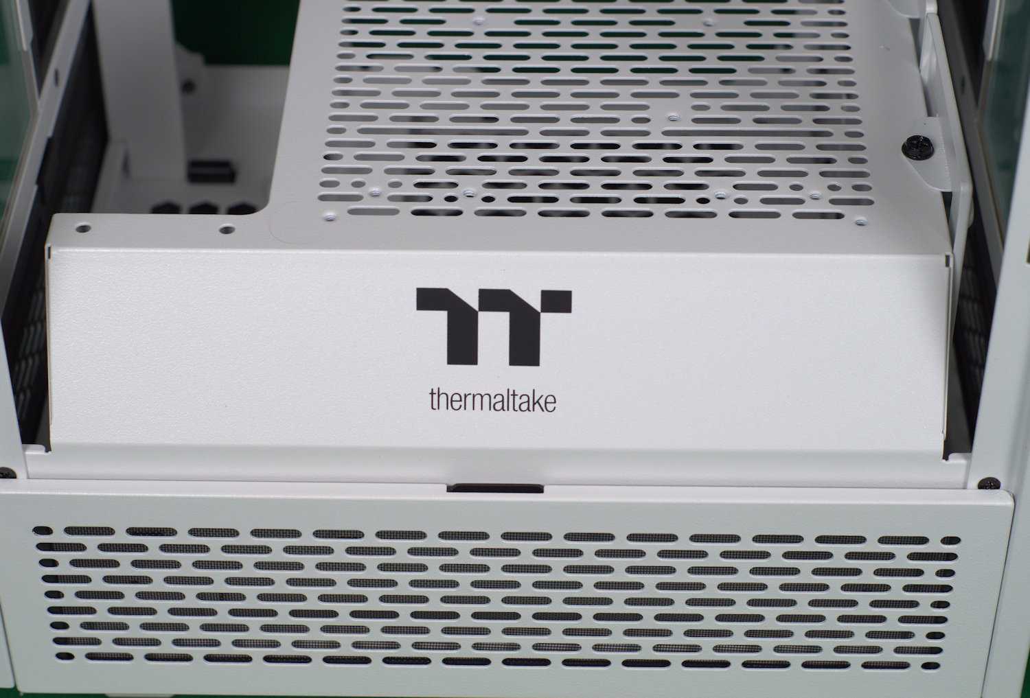 Блок питания устанавливается в нижней части корпуса через рамку крепления, фиксируемой четырьмя винтами. Ограничение на его глубину — 180 мм.