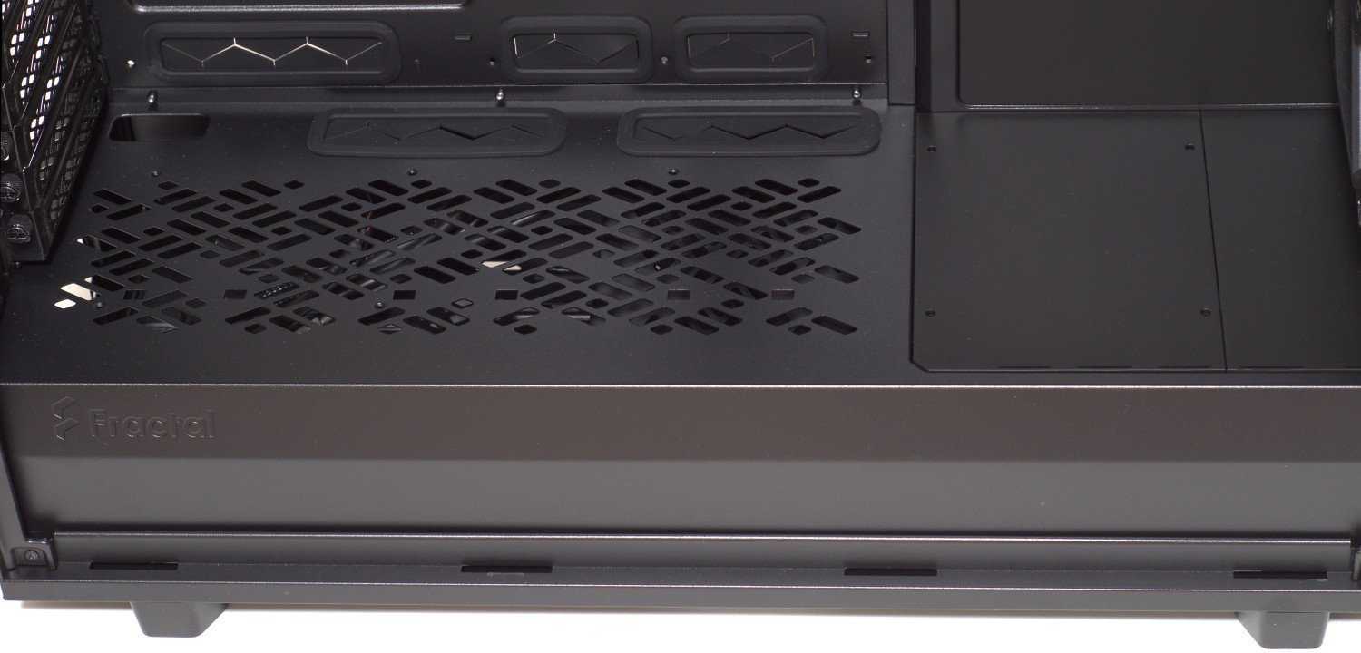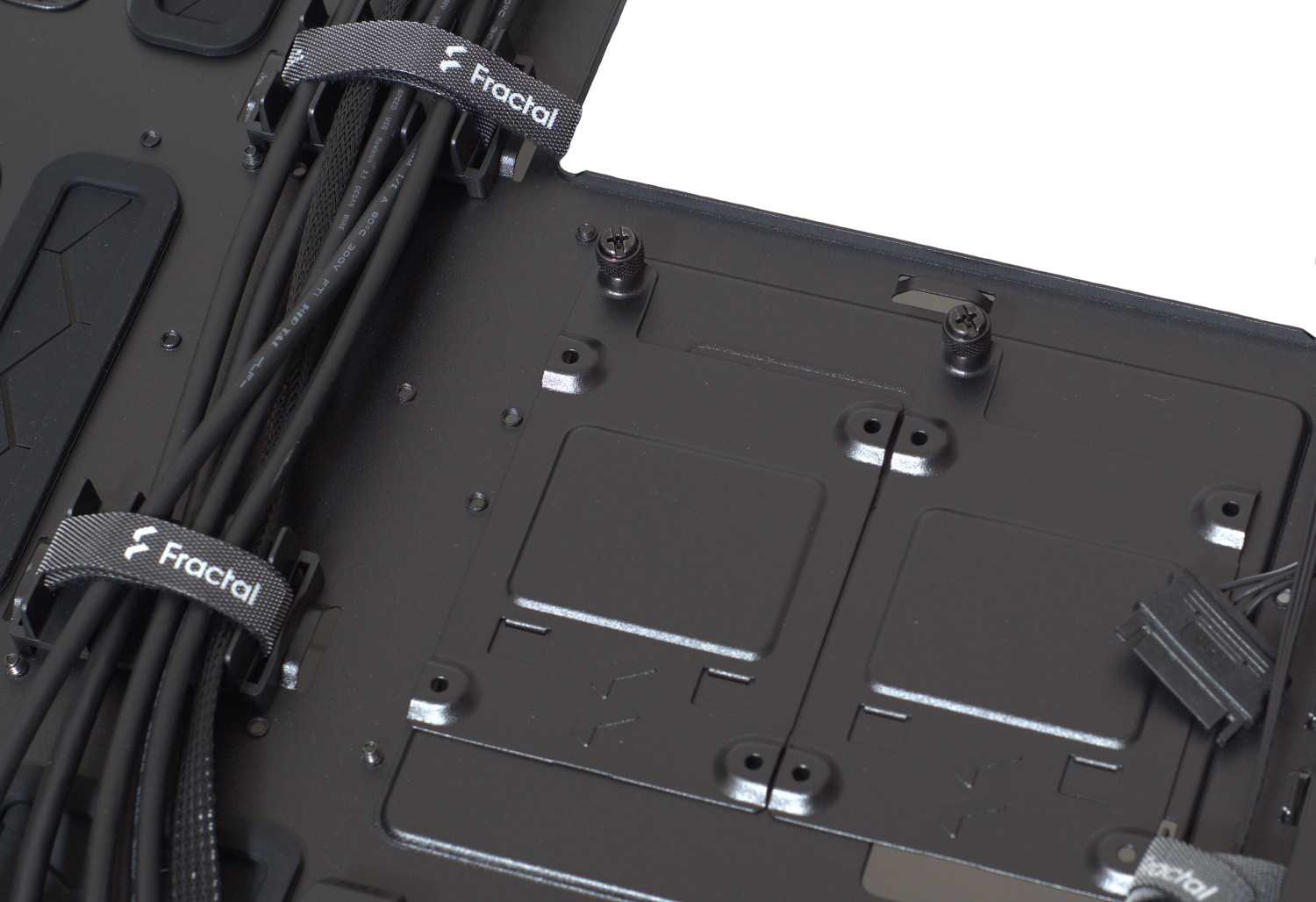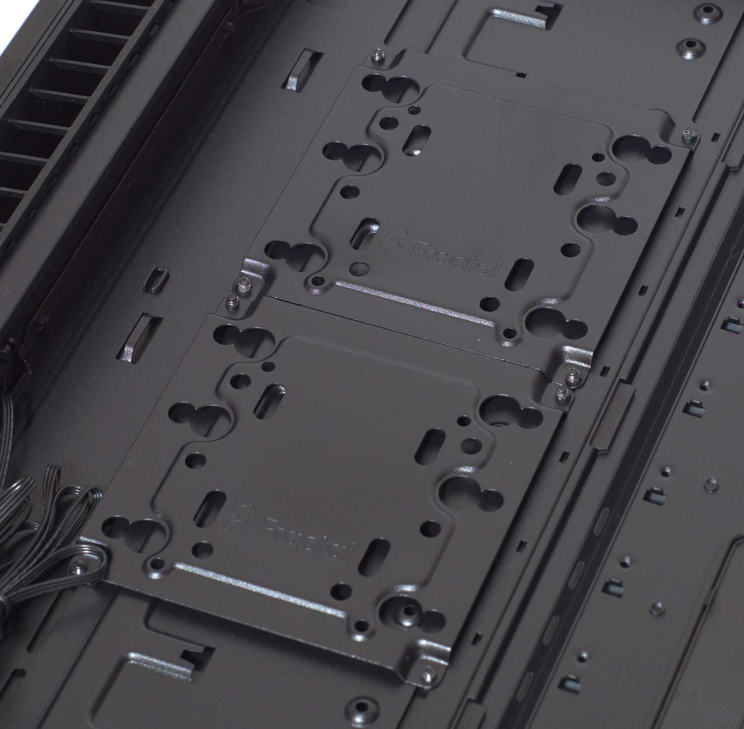 Привычно для корпусов серии Define наличие еще двух посадочных мест под 2.5″ накопители, размещенные в нижней части поддона.