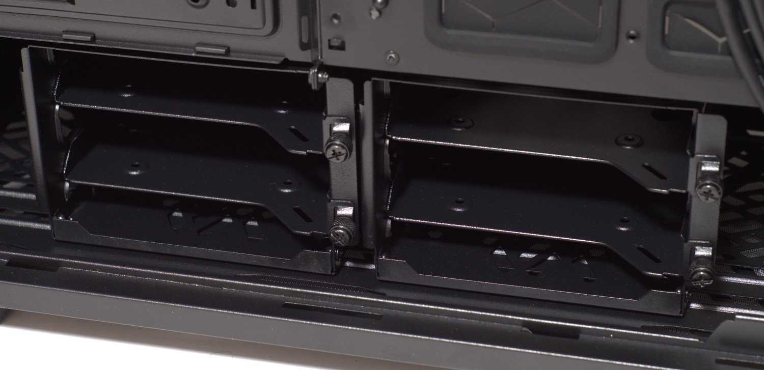 Стойки накопителей: 6 шт2.5” или 3.5” Крепления на поддоне материнской платы: 2 шт2.5” или 3.5” |