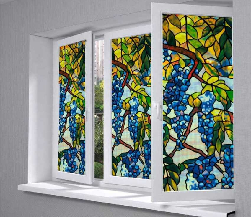 Декоративная пленка на окна устанавливается в первую очередь с целью украшения стекла. В настоящее время можно приобрести изделия с различными орнаментами или рисунками, позволяющие идеально вписать оконный проем в окружающий интерьер и привнести в помещение «изюминку». Этот вариант пленки нередко используют на окнах и перегородках в ванной комнате. Также в домах и квартирах с винтажным интерьером актуально наклеивать на окна витражные пленки как максимально дешевую альтернативу настоящему витражу.