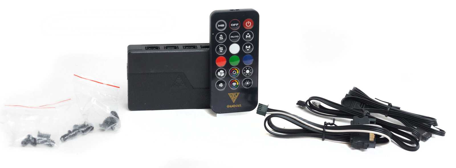 Комплектация Aeolus M1-1204R отличается только количеством вентиляторов — 4×120 мм Dual Ring RGB Fan. Весь прочий комплект полностью идентичен.