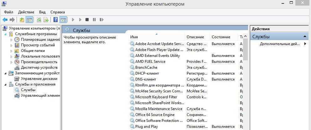 Чтобы отключить ненужную службу, нужно зайти в « управление компьютером » и выбрать вкладку « службы «.