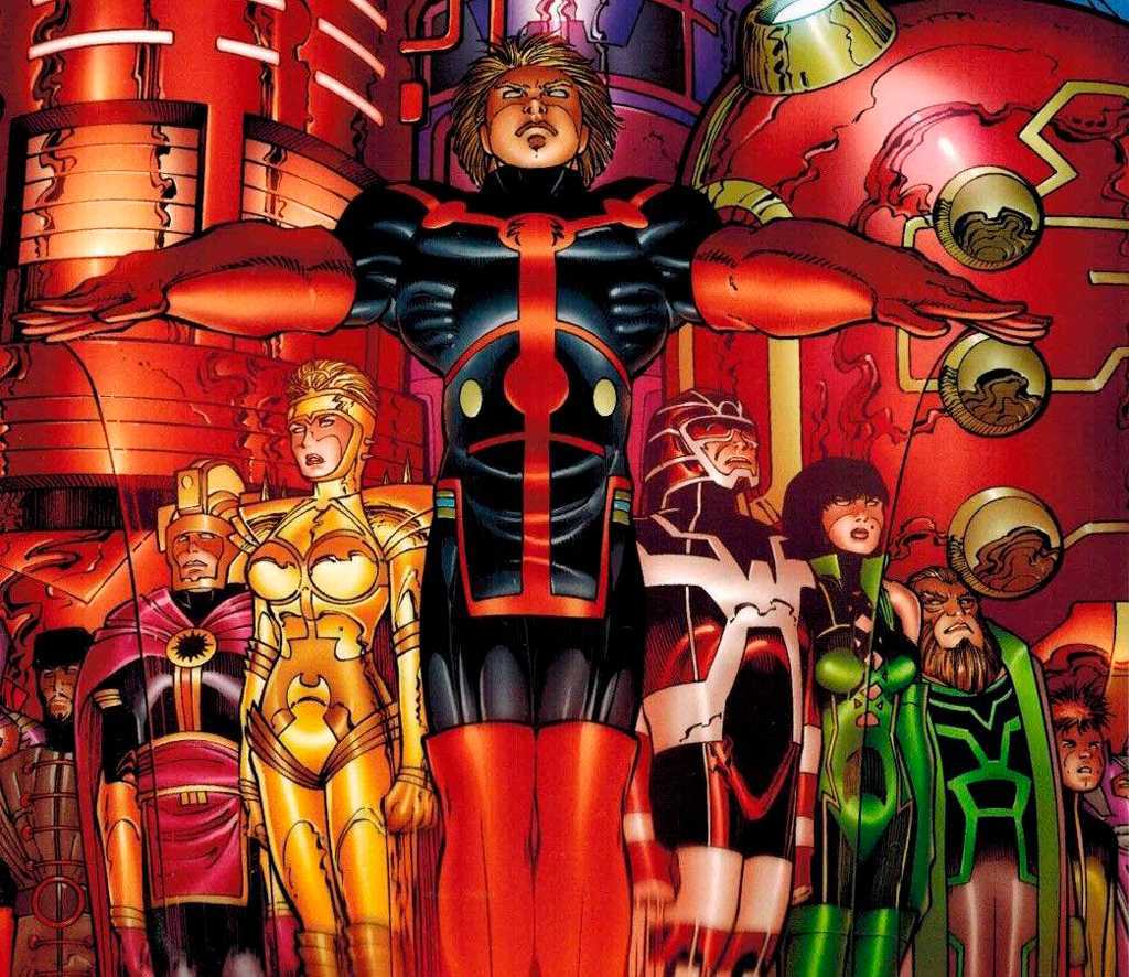 Согласно оригинальным идеям Кирби, Вселенная населена гигантскими космическими богами, известными как Небесные существа. Вы могли заметить одного из этих богов, придуманных Кирби, в первом фильме «Стражей галактики». Небожители путешествуют с планеты на планету, проводя определенные эксперименты. Тысячелетия назад Небесные существа прибыли на Землю и создали три новых вида: людей, Девиантов и Вечных.