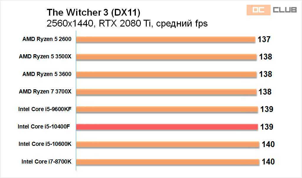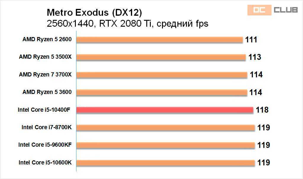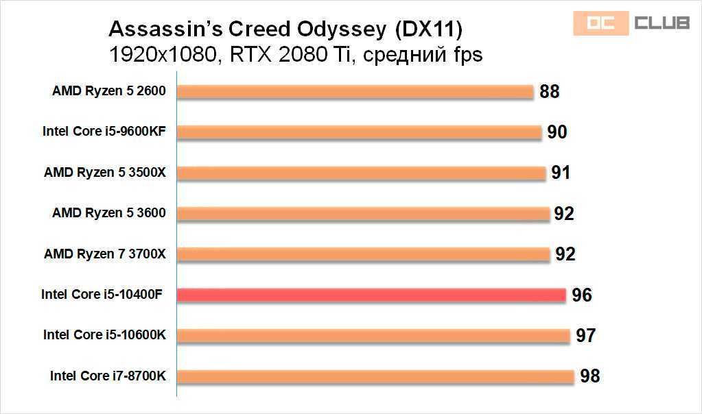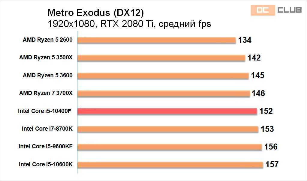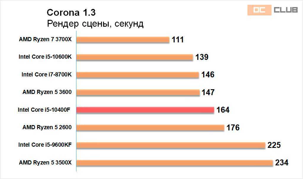 Вообще удивительное совпадение: частота Intel Core i5-10400F меньше Core i5-10600K на 11,6%, и в бенчмарках Core i5-10400F как раз проигрывает где-то около 11,5%.