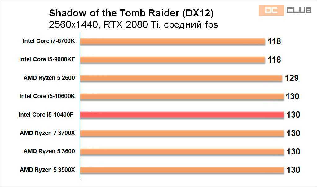 Процессоры серии i5 всегда были наилучшим решением для игр исходя из соотношения цена/производительность, хотя сама Intel наилучшими всегда называла i7-i9. Производительность Intel Core i5-10400F оценивалась в четырёх играх при разрешении FullHD (1920 x 1080) и WQHD (2560 x 1440).
