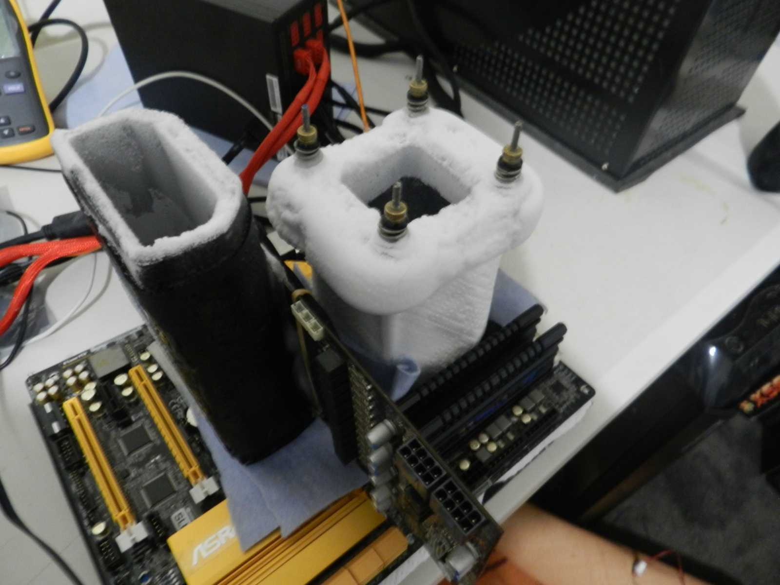 Чем глубже в лес — тем злее волки. С отрицательной отметки по Цельсию разгон уже теряет бытовой шарм (то есть, геймерские и рабочие нужды отходят на второй план, главное — мощность ради рекорда), зато охлаждение становится очень колоритным даже в недорогом варианте с сухим льдом. А потом приходит пора перейти на тяжёлые вещества — жидкий гелий, например, с которым реальным становится снижение температуры вплоть до -200 °C и ниже. Нужно будет очень попотеть, чтобы процессор/видеокарта работали в таком режиме корректно, потому как управлять напряжением придётся с оглядкой на другие параметры, нежели при водяном или воздушном охлаждении.